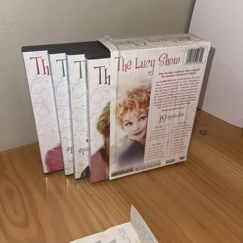 The Lucy Show 4 DVD Set includes 19 episodes starring Lucille Ball, providing hours of entertainment for fans of classic TV. The set also comes with a receipt, adding a special touch to this nostalgic collection. Perfect for those who appreciate the humor and charm of Lucille Ball in this beloved sitcom.