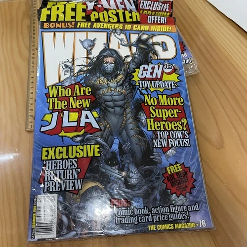 Up for sale is the Wizard Comic Magazine #76 featuring The Darkness character, published by Wizard in December 1997. This single issue comic book comes sealed in a poly bag and includes various inserts. The comic is in excellent condition and perfect for collectors or fans of US Comics, superheroes, action, adventure, and drama genres. This vintage comic book is written in English and has a publication frequency of monthly. It is a first printing and is suitable for a general audience. The comic book is not personalized or inscribed, and it is not certified. The Wizard Comic Magazine #76 is a must-have for fans of Marvel (MCU) and DC Universe, published by a reputable publisher based in the United States. See all pictures of item for sale Sold as is