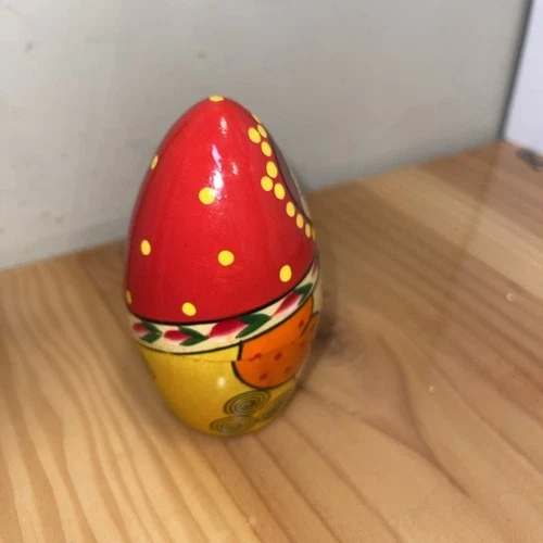RUSSIAN KHOKHLOMA HAND PAINTED WOODEN EGG 4 1/8" #6