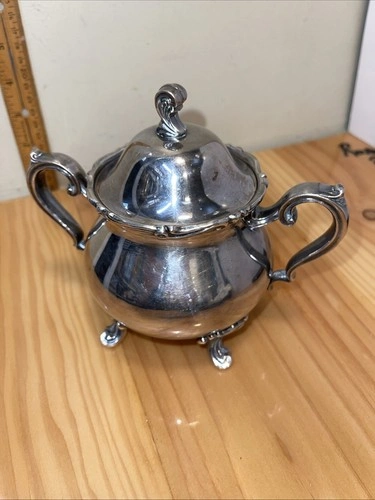 This vintage 2pc sugar bowl set from International Silver is a must-have for any collector of silver antiques. The set includes a sugar bowl and lid, both made of high-quality silverplate. The intricate designs and attention to detail make this set a beautiful addition to any kitchen or collection. The brand of this set is International Silver, known for their exceptional quality and craftsmanship. The composition of the set is silverplate, which adds to its overall value. This set is perfect for those who appreciate the beauty and history of silver antiques. See all pictures of item