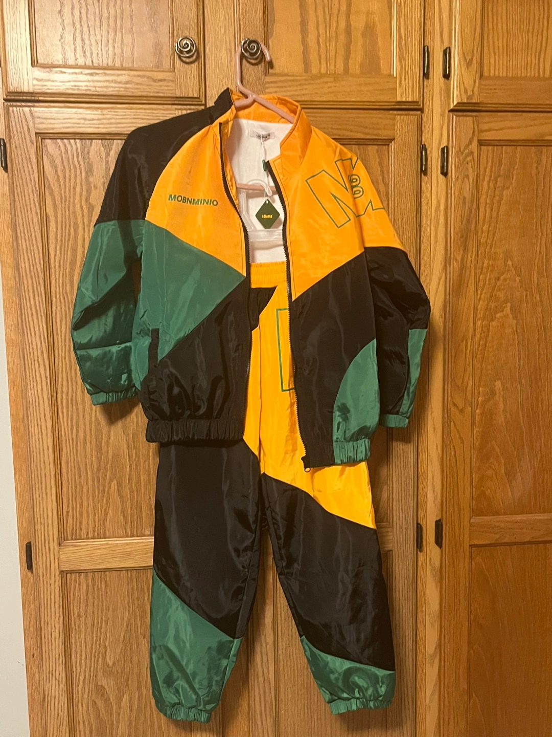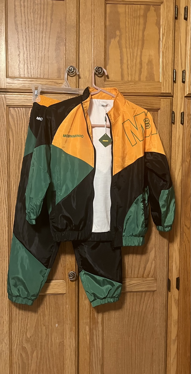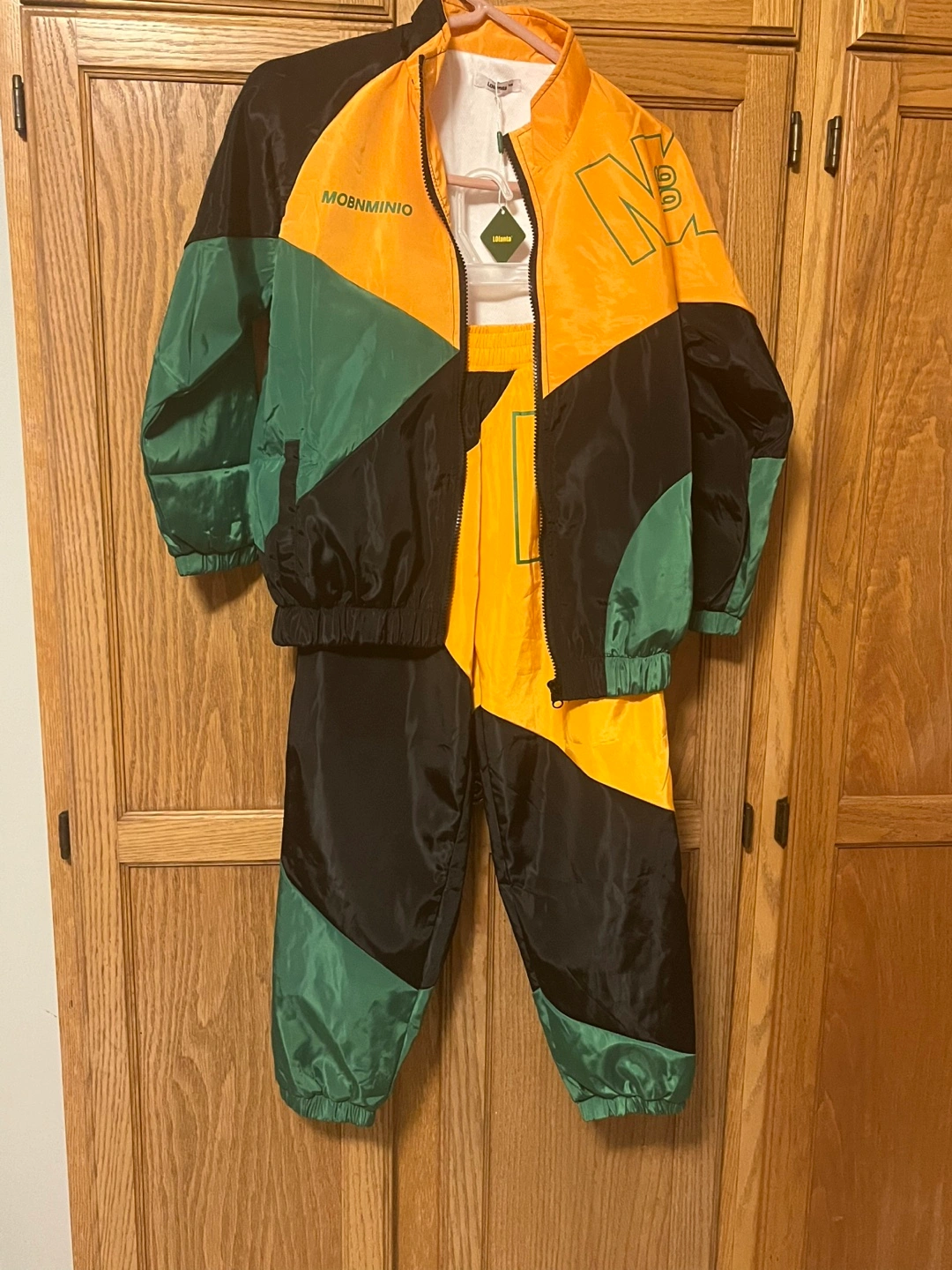 MOBNMINIO kids tracksuit, size 140. Brand new, never worn, tag still on. Very stylish.Black with green and yellow colours.