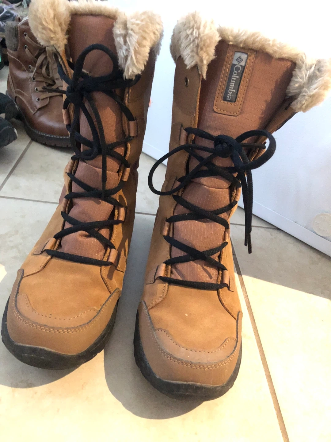 I'm selling a pair of Columbia women's winter boots in size 9.5. They're perfect for keeping your feet warm and dry during the colder months. These boots feature a stylish design and durable construction, making them a great choice for everyday wear. They're in good condition and ready for a new owner!