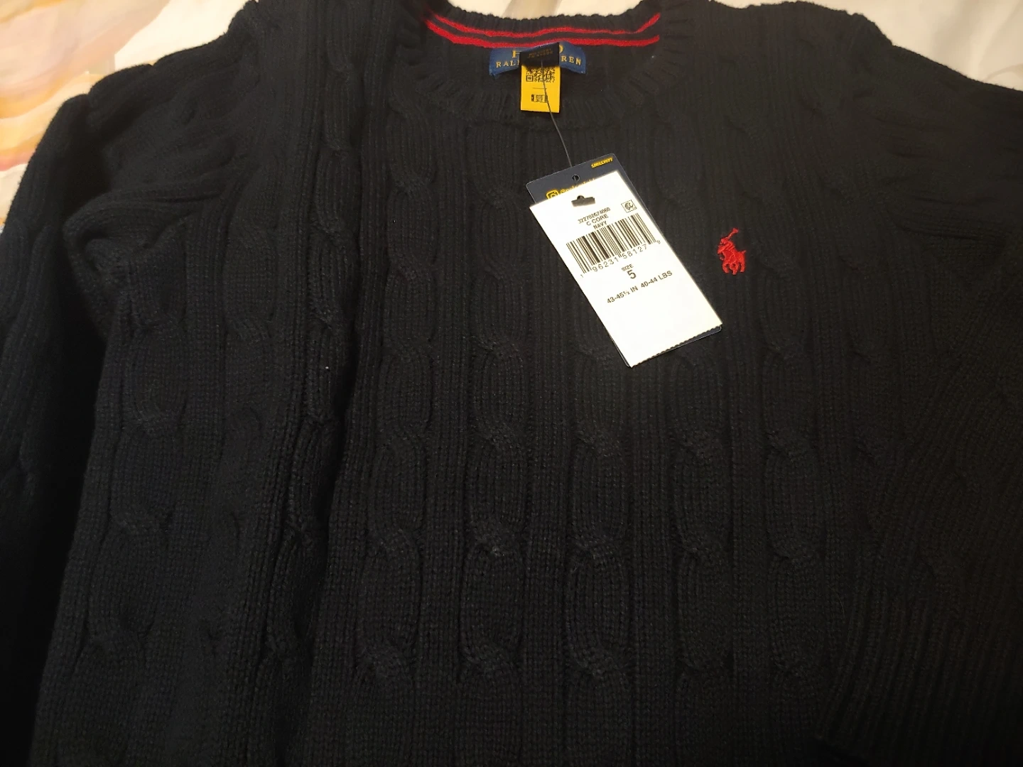 brand new Ralph Lauren sweater in size 5T. It's a classic cable-knit style in a navy colour. Fits more like a 4T
