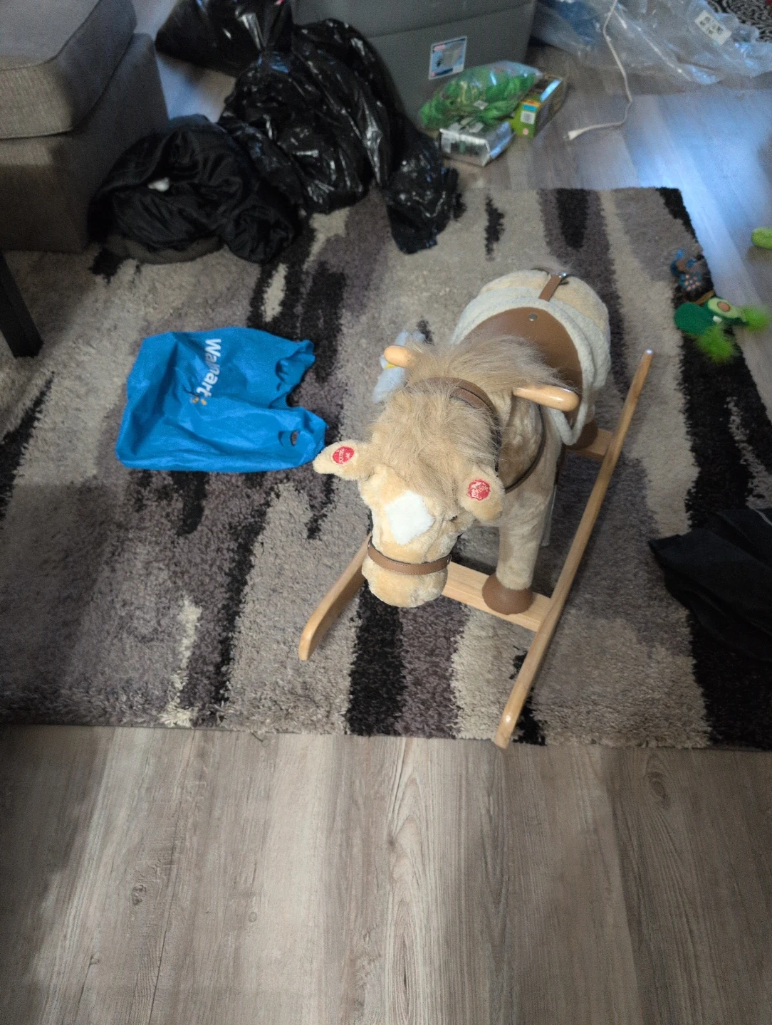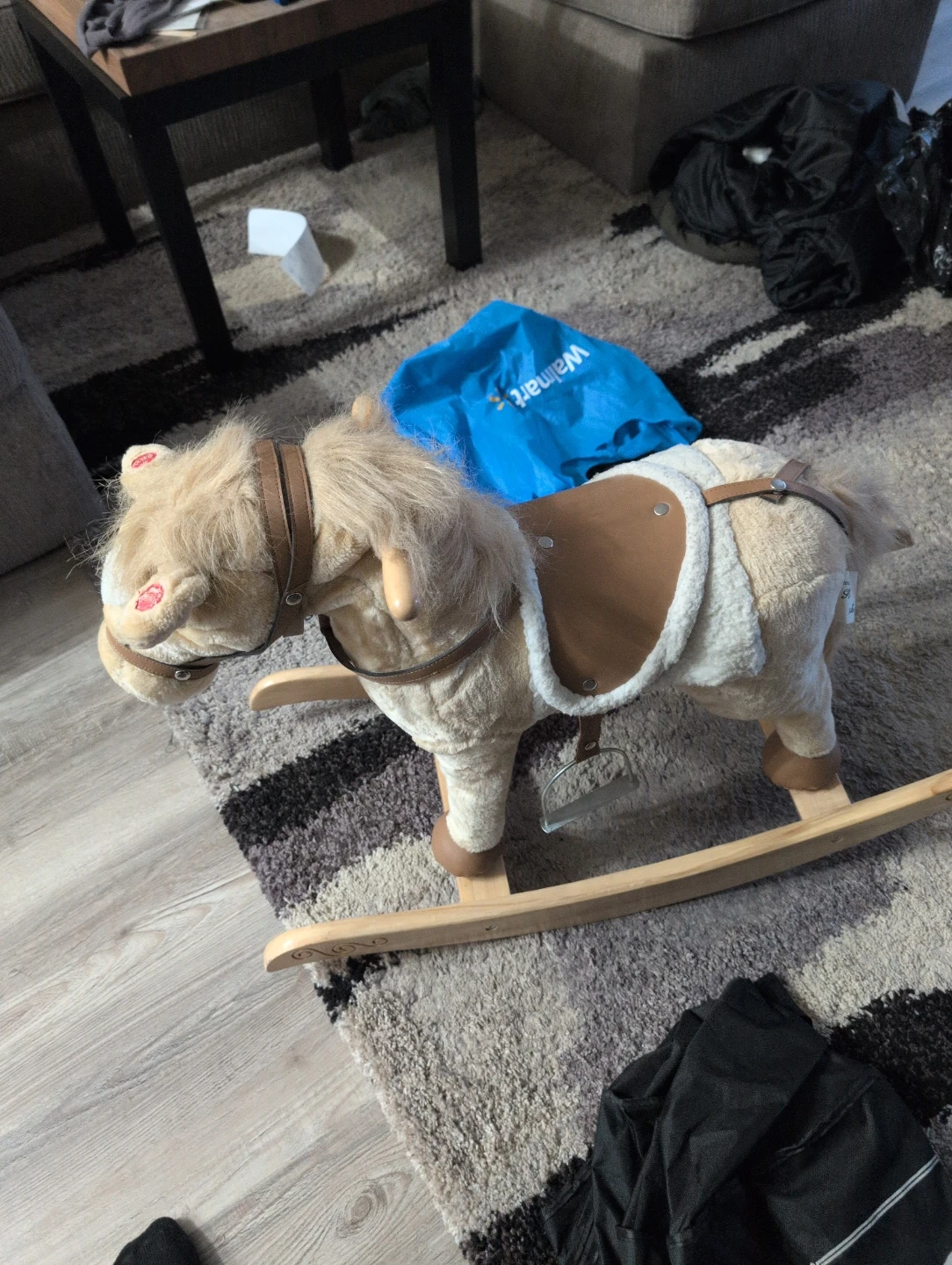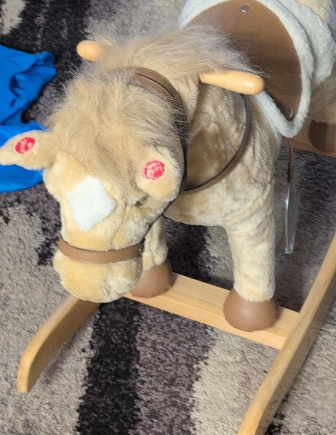 Selling a cute Chrisha Playful Plush rocking horse! It's in great condition and ready for a new little rider. This adorable rocking horse is sure to bring hours of fun and imaginative play to your child's playtime