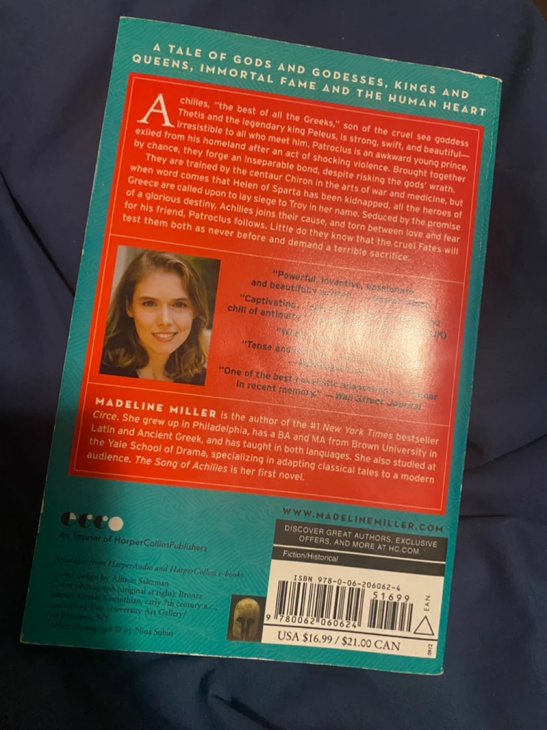 Selling The Song of Achilles, a novel by Madeline Miller. It's a New York Times bestseller and winner of the Orange Prize for Fiction. A tale of gods and goddesses, kings and queens, immortal fame and the human heart! Originally priced at $16.99 USD / $21.00 CAD