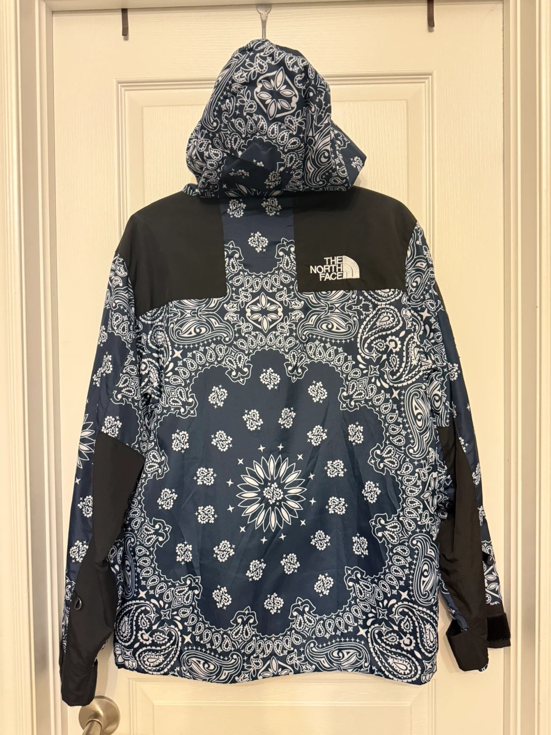 Selling a The North Face x Supreme Bandana Mountain Jacket in size M. It's a stylish and unique piece with the bandana pattern. Great for staying warm and dry!