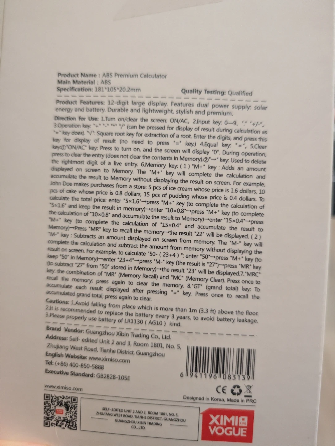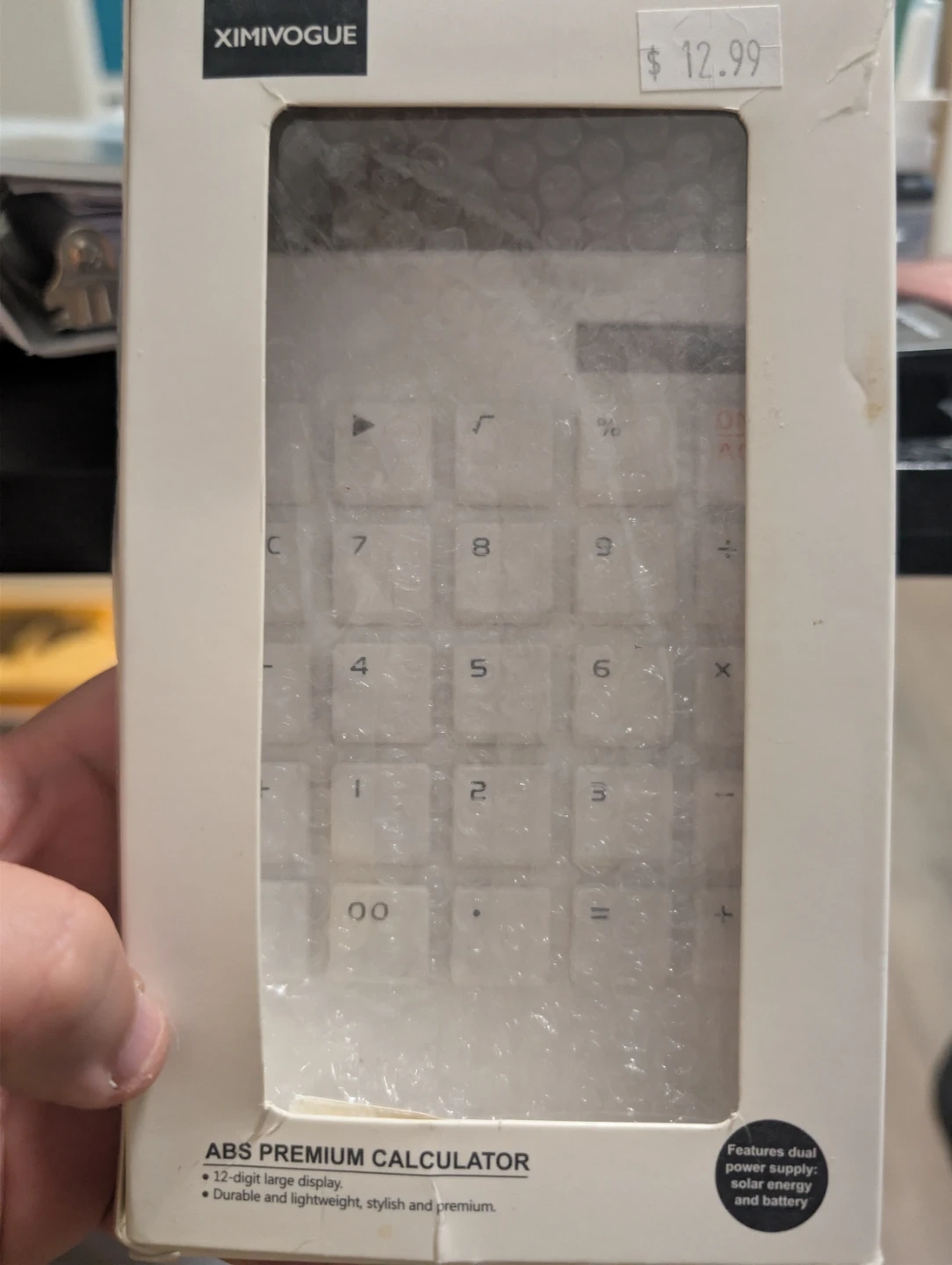 Selling a brand new XIMIVOGUE ABS Premium Calculator still in its original packaging! It features a 12-digit large display and dual power supply (solar energy and battery). It's durable, lightweight, stylish, and premium. The box is included!
