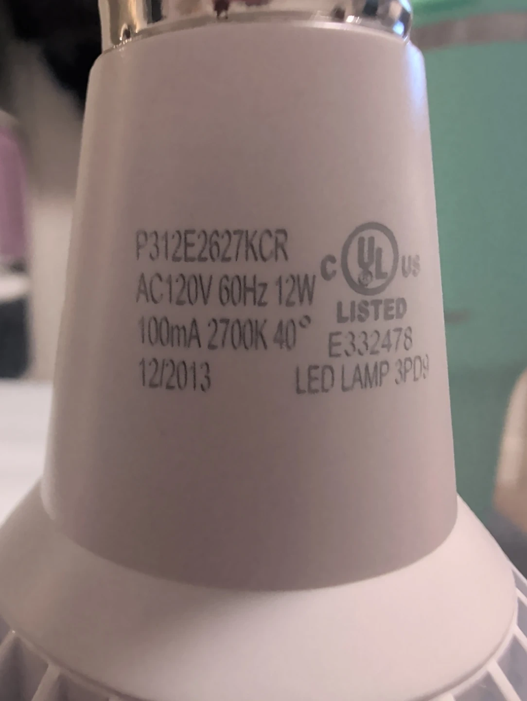 Selling a PAR30-AC120V 12W LED light bulb. It's a CR-2700K-40°-DIM model. The bulb operates at AC120V 60Hz 12W with 100mA 2700K 40°.