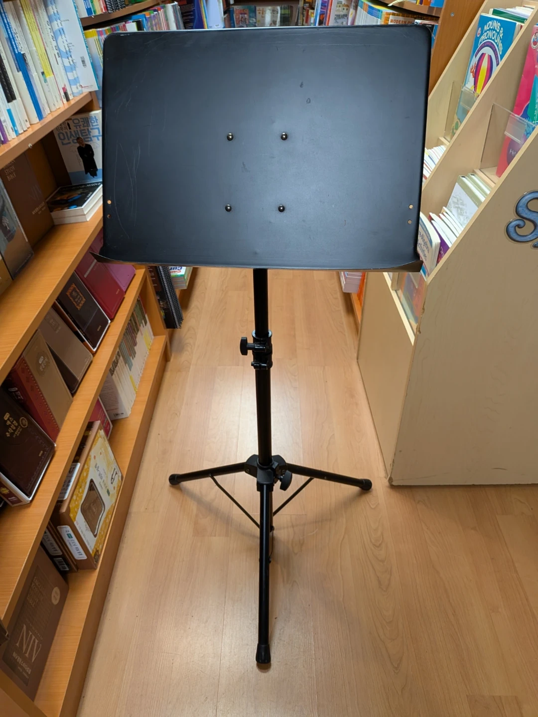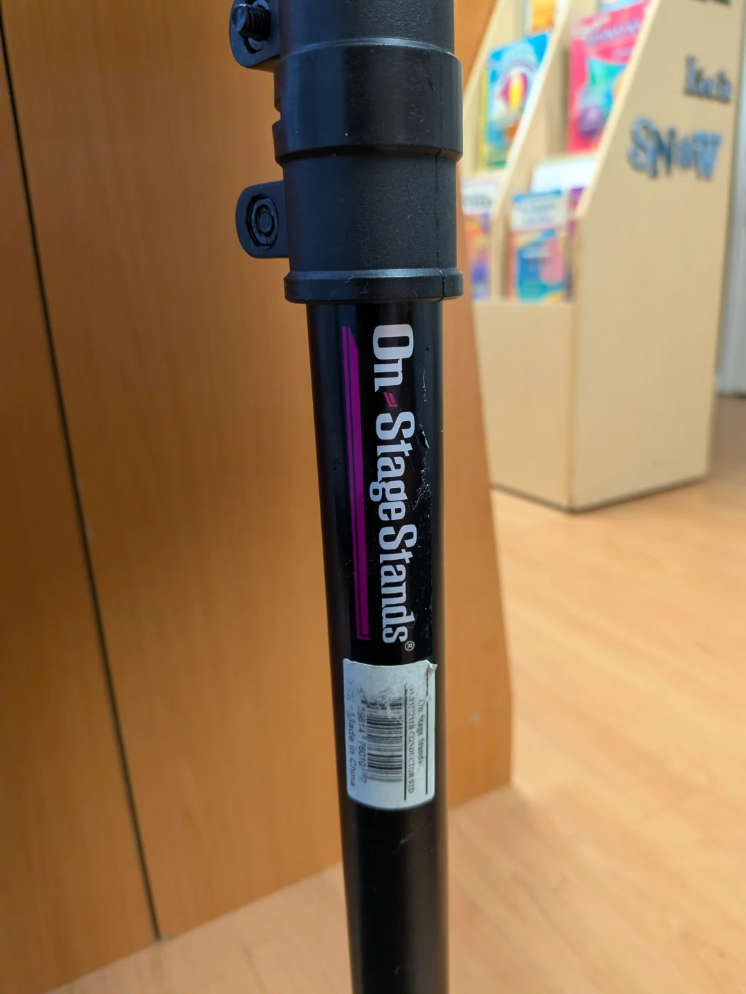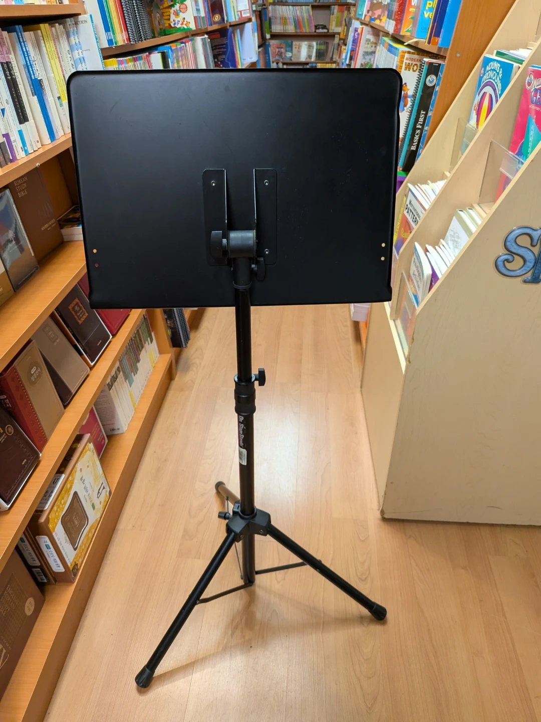 Selling a used On Stage Stands music stand! It's almost brand new condition with some scratches on the bookplate. Very study and stable.