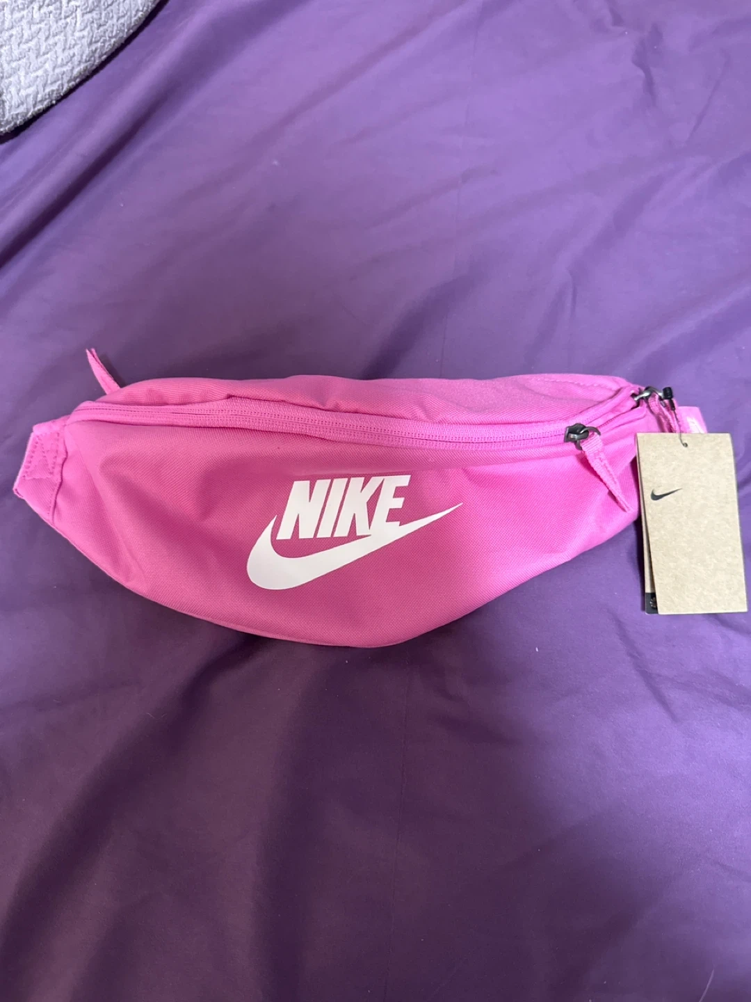 Brand new Nike Heritage fanny pack in pink! It's perfect for keeping your essentials close and adding a pop of colour to your outfit