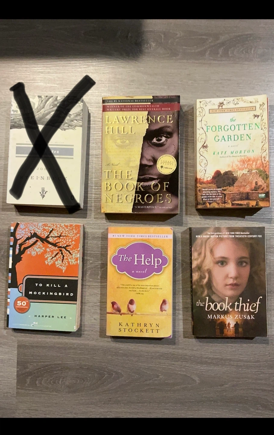 Assorted Novels: East of Eden, The Book of Negroes, and more