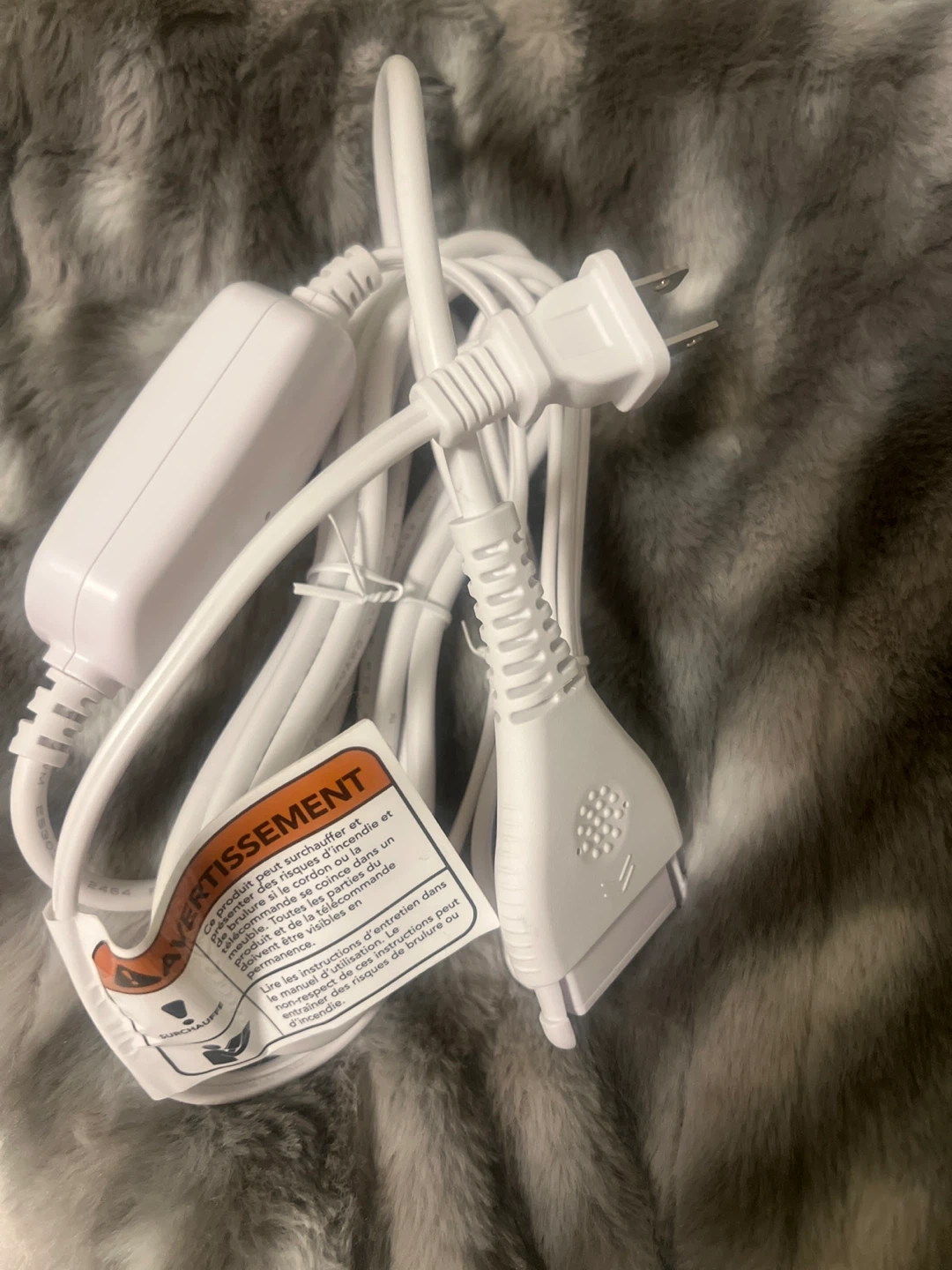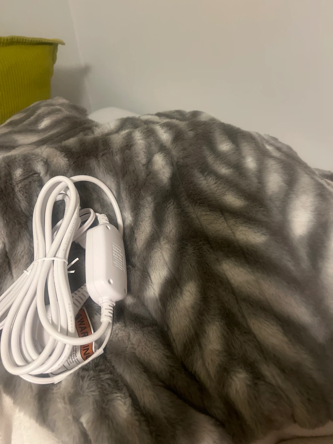 Snuggle up with this cozy heated faux fur throw blanket! It's in great condition and ready to keep you warm on chilly nights. The blanket features a soft, plush faux fur texture in a stylish grey colour. It also comes with the cord.
