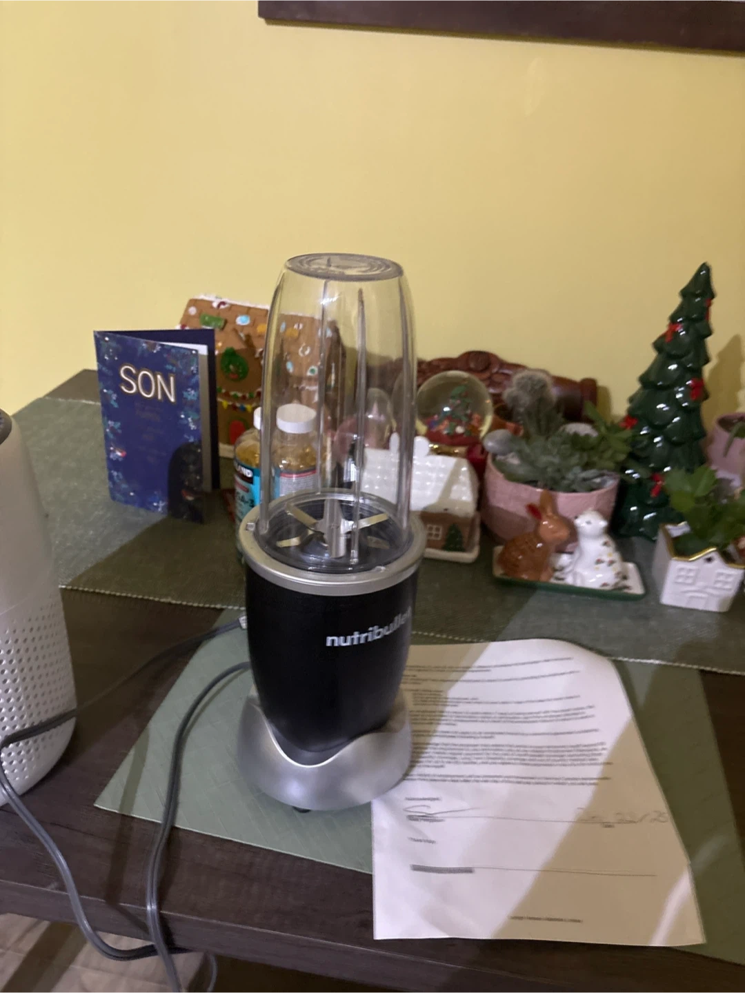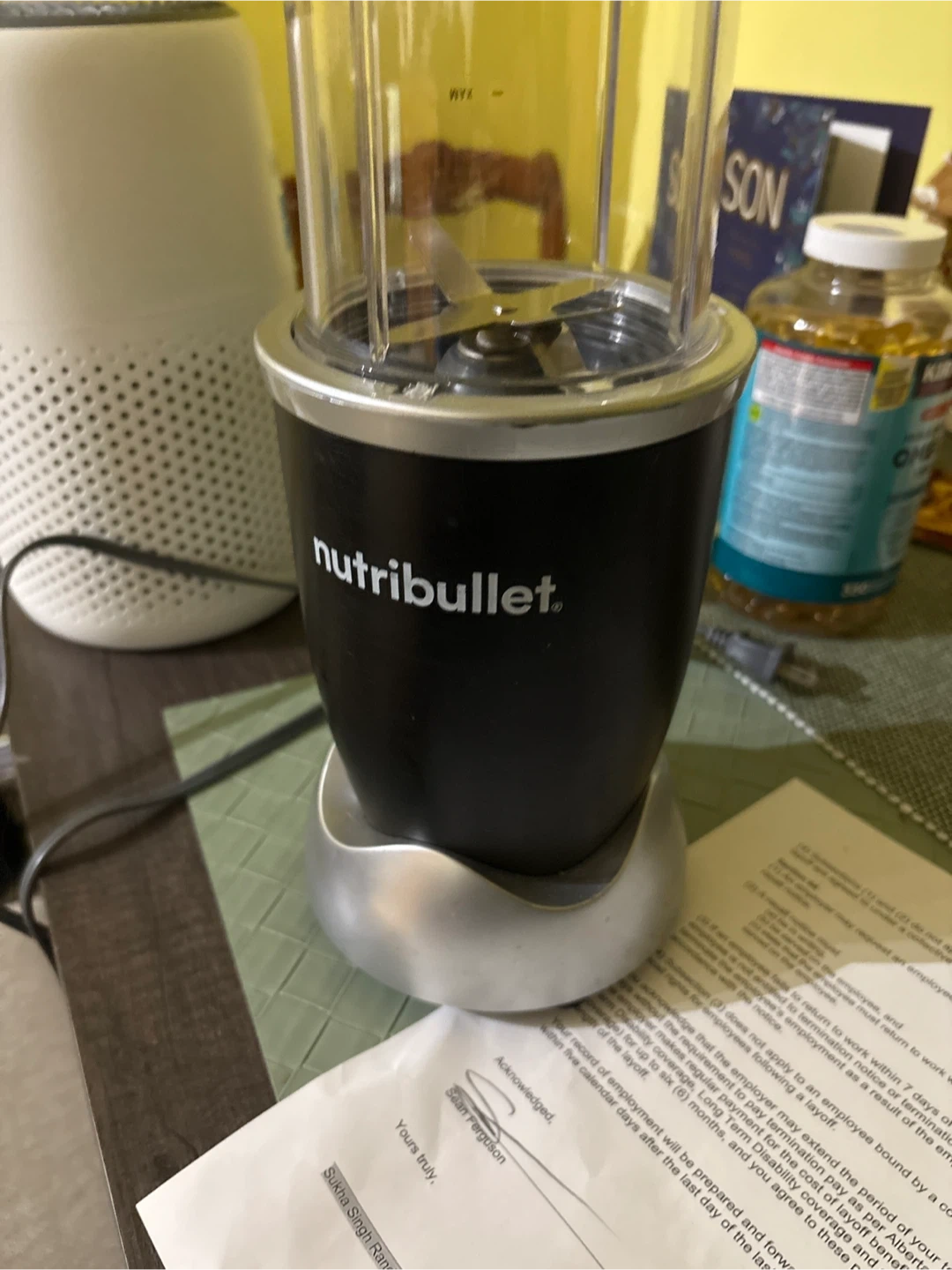 Selling a NutriBullet blender! It's perfect for making smoothies and shakes. This compact blender is powerful enough to blend fruits and vegetables quickly. It's in good condition and ready for a new kitchen