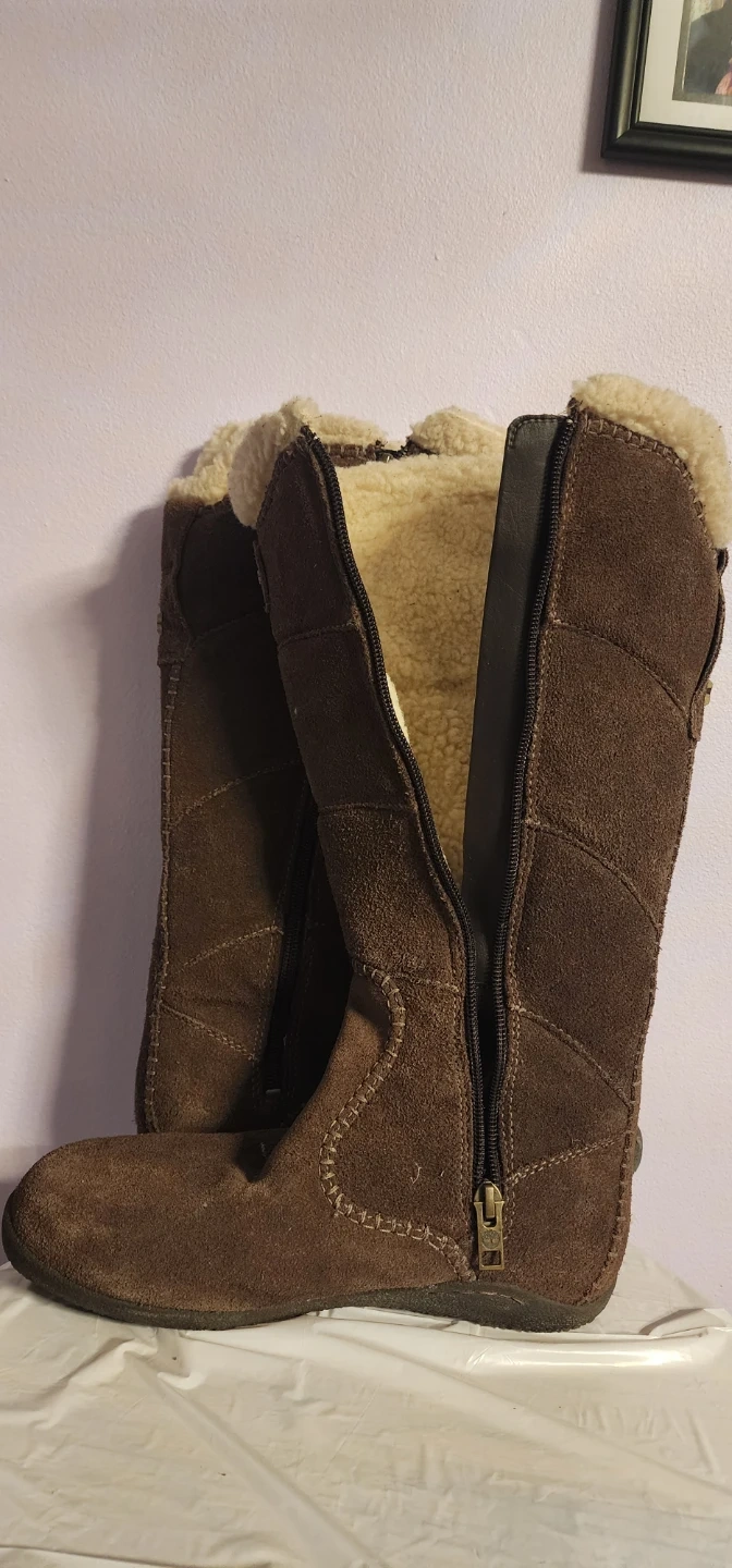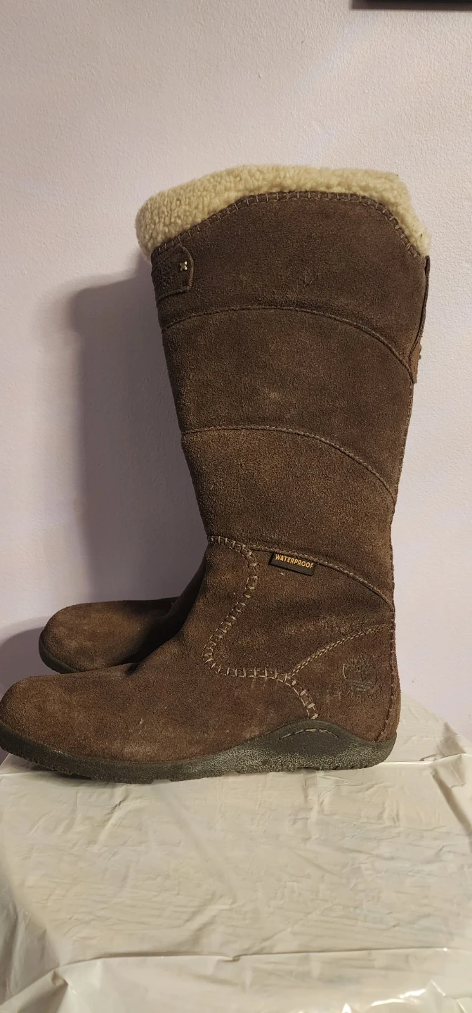 Selling a pair of size 6 Timberland boots in brown suede! They're waterproof and in good condition. Perfect for the fall and winter weather!