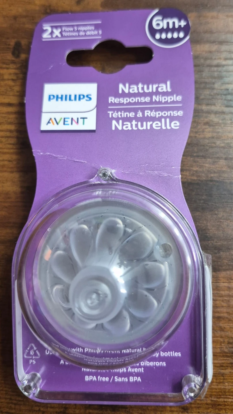 Selling a new pack of Philips Avent Natural Response Nipples. These are size 5 flow nipples and are suitable for babies 6 months and older. The nipples are BPA free