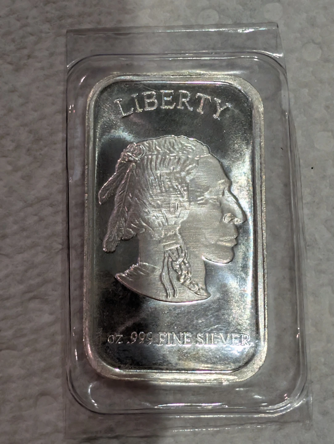 1 oz .999 Fine Silver Bar - Liberty Indian Head & Buffalo