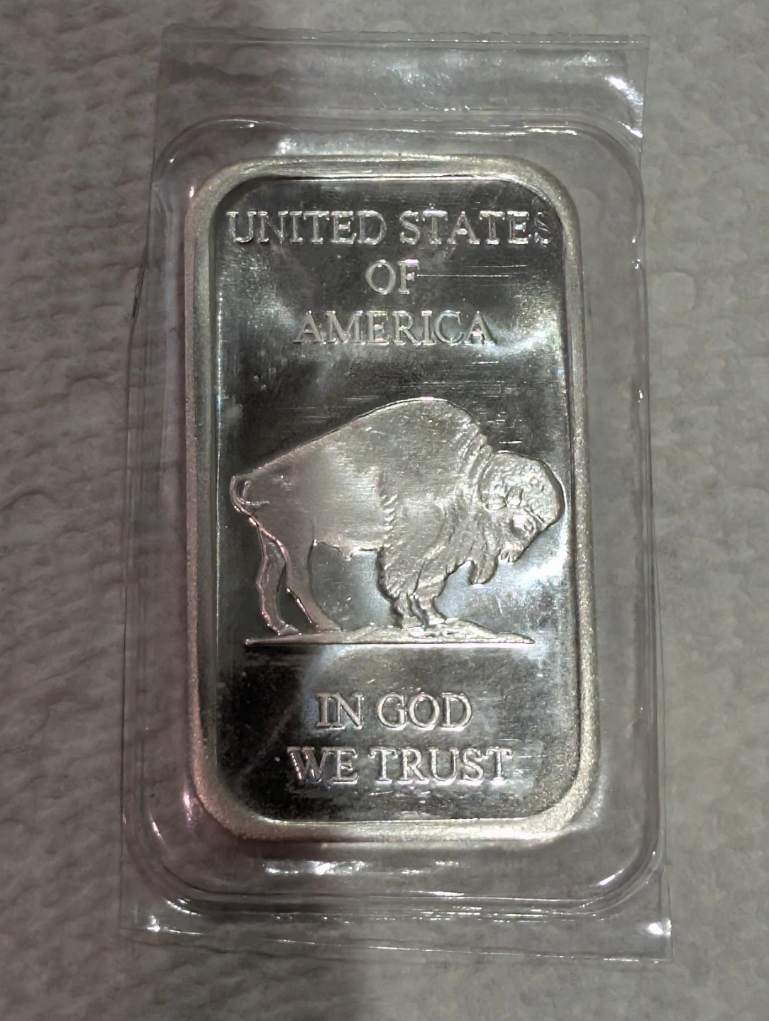 Selling a 1 oz .999 fine silver bar. It features the Liberty indii head design on one side and a buffalo on the other. It comes in a protective plastic case . New uncirculated