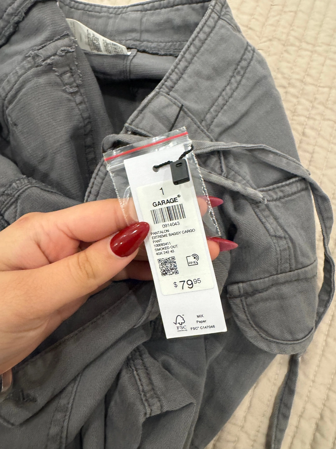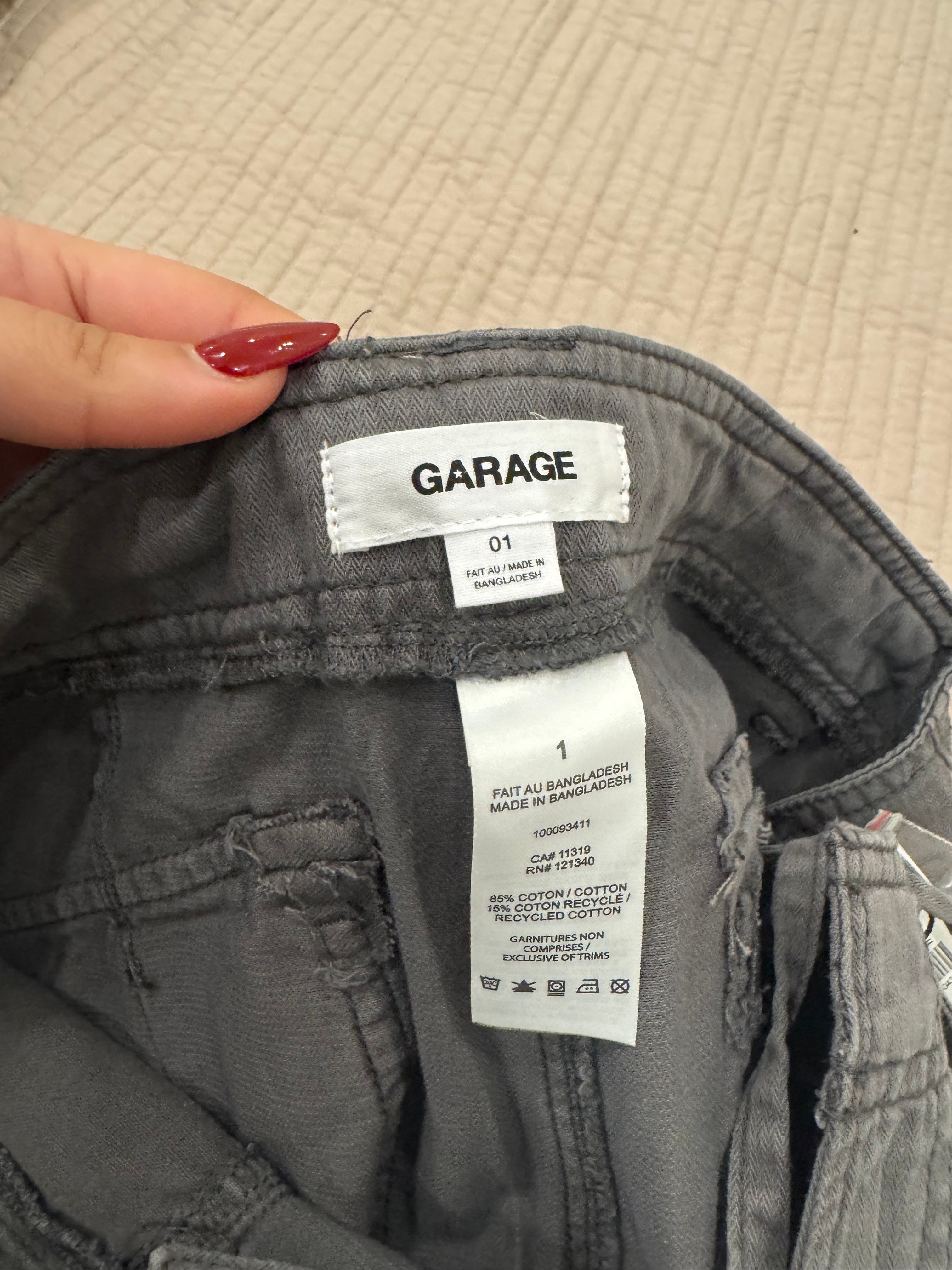 Brand new Garage cargo pants, size 1 (Small), in a grey “smoked out” colour.