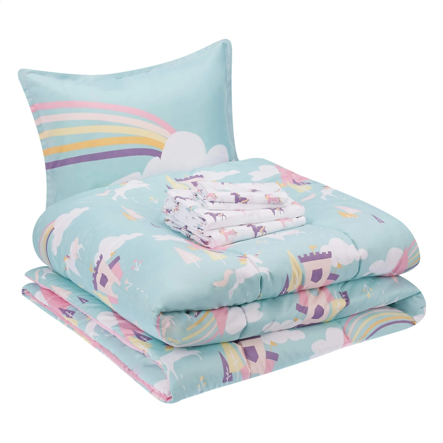 kids easy wash microfiber bed in a bag bedding set unicorn