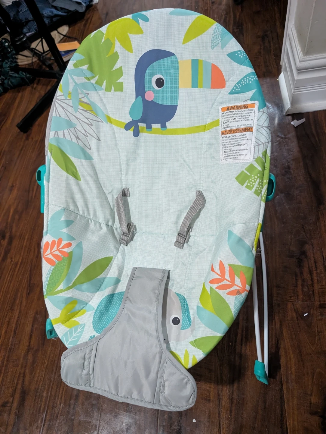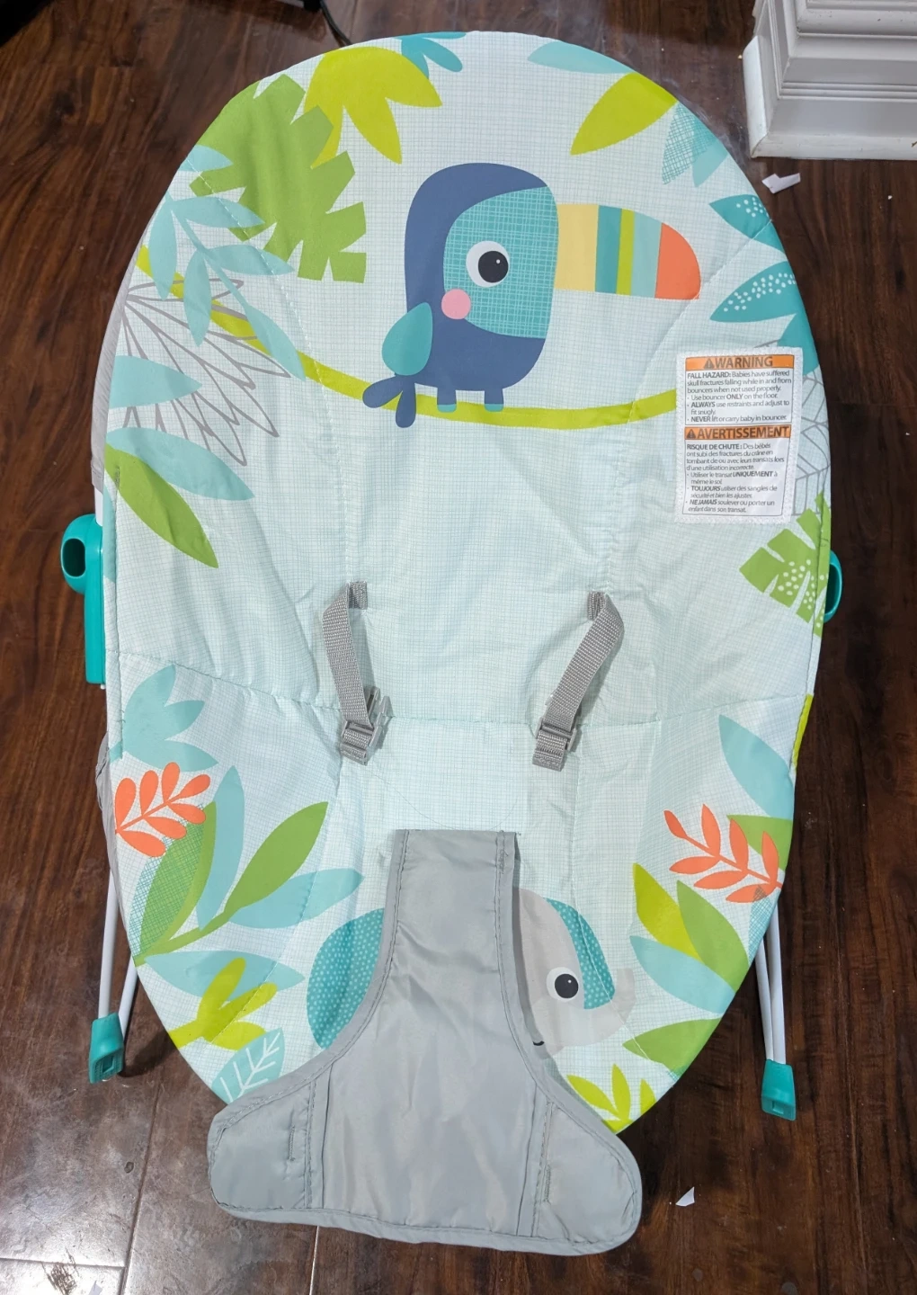 Selling a Kids II Rainforest Vibes Vibrating Bouncer. It's in great condition and ready for a new little one! The model number is 12227. This bouncer features a cute toucan design and provides gentle vibrations to soothe your baby. Only used once.
