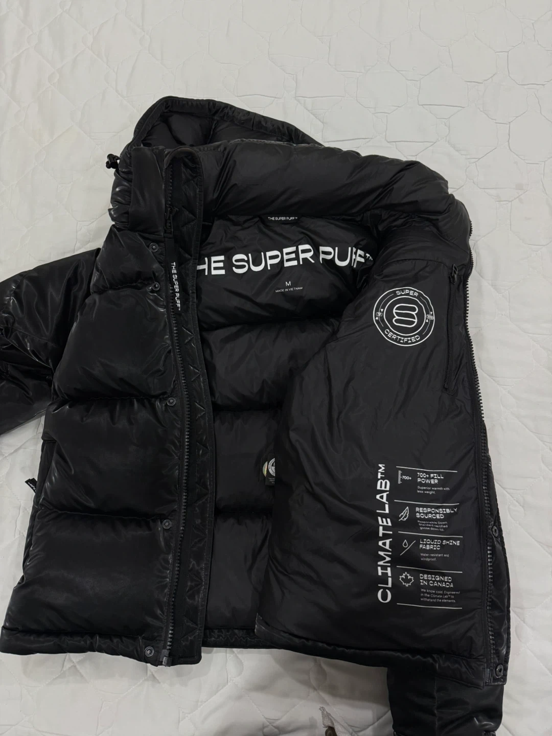 Selling an Aritzia Super Puff S in black, size medium. It's in great condition and ready to keep you warm this winter! It's designed in Canada for warmth and to protect you from the elements.