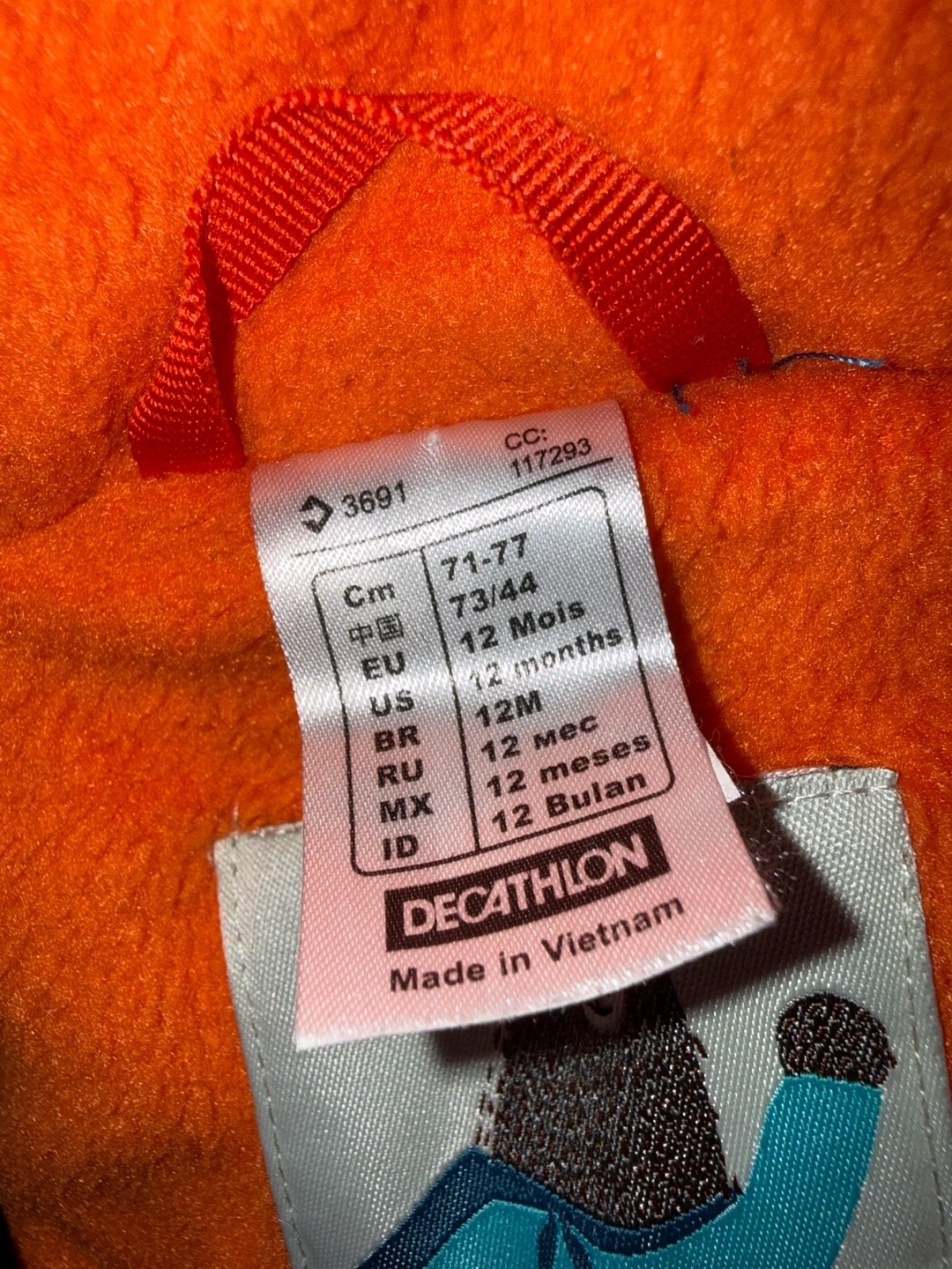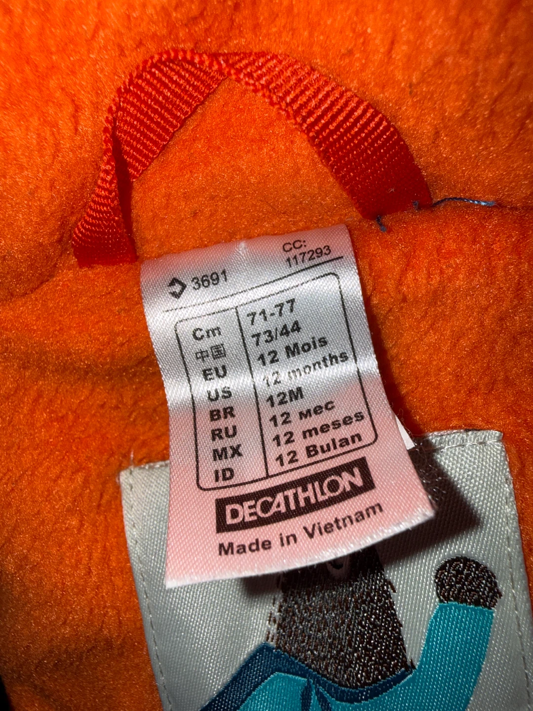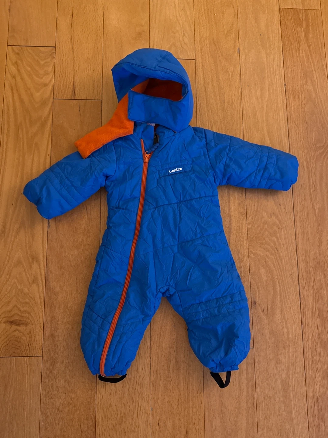 This adorable Wedze baby snowsuit is perfect for keeping your little one warm and cozy during the winter months! It's in great condition and designed for babies around 12 months old. The snowsuit features a hood and a zip-up front for easy dressing and undressing