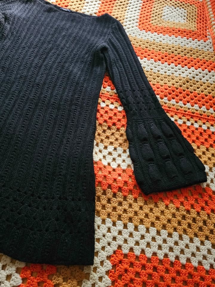 black cashmere ribbed knit sweater tunic statement sleeves sculptural sleeves minimalist knit elevated basics quiet luxury Y2K minimal soft luxury cozy goth gothic alternative witch witchy designer knitwear cold weather staple fall autumn winter spring