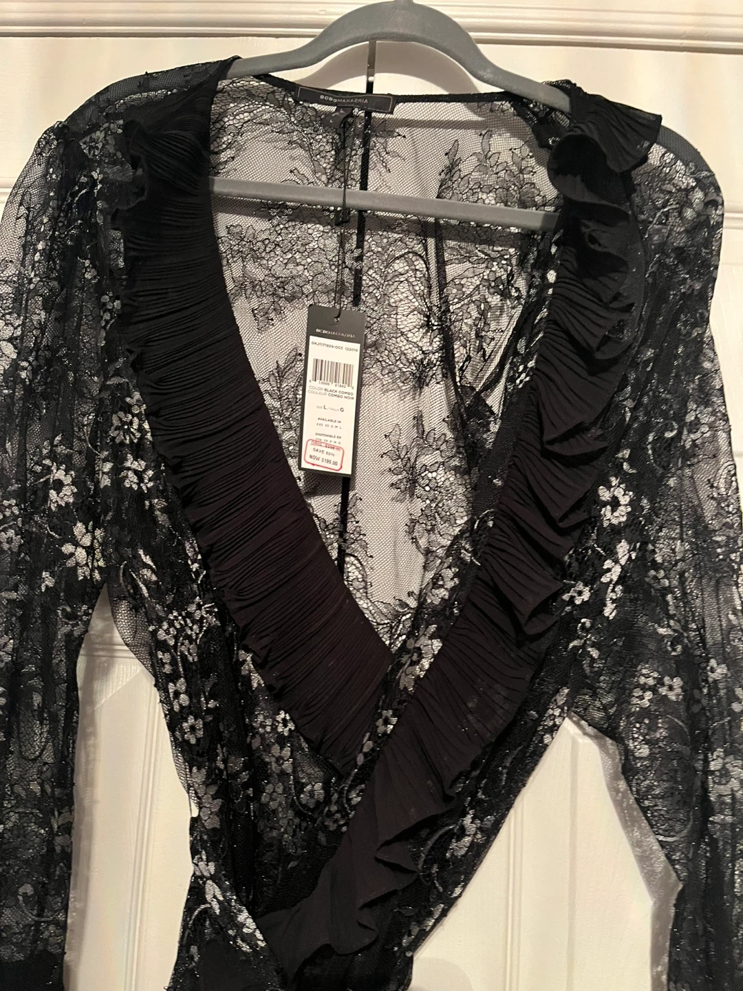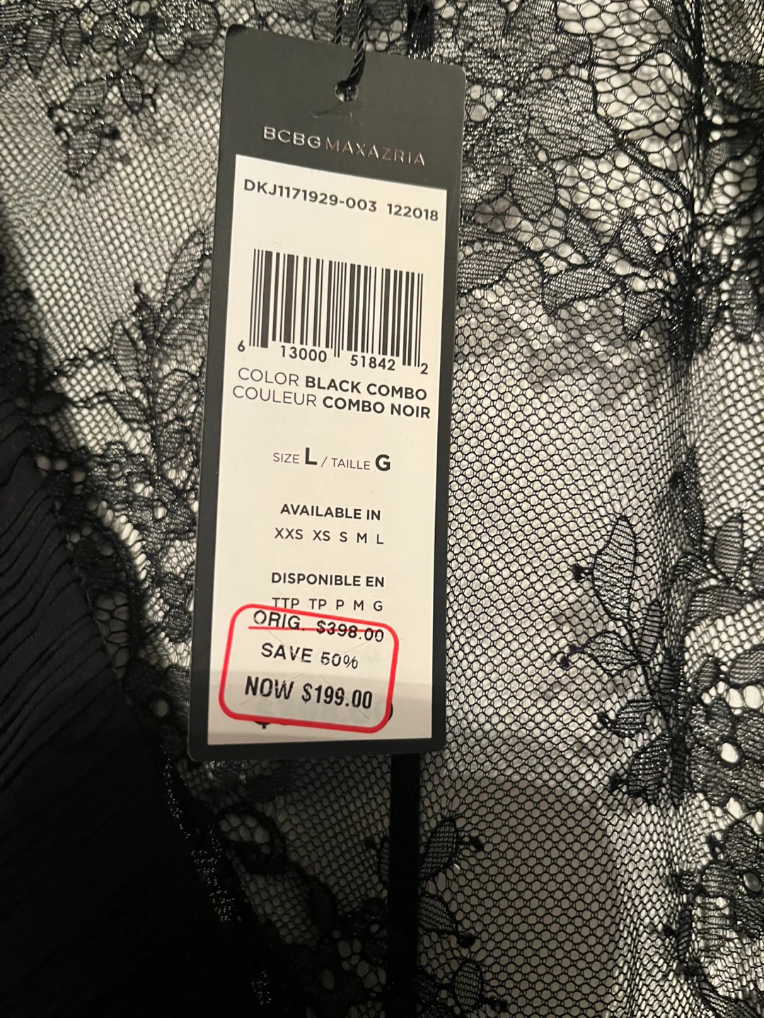 Selling a beautiful BCBGMAXAZRIA lace dress in a size large! It's a stunning black combo colour. Originally bought for $398.00 Perfect for New Year’s party ! Wedding ! Wear with a little black slip under or be daring and flash your bra and panties