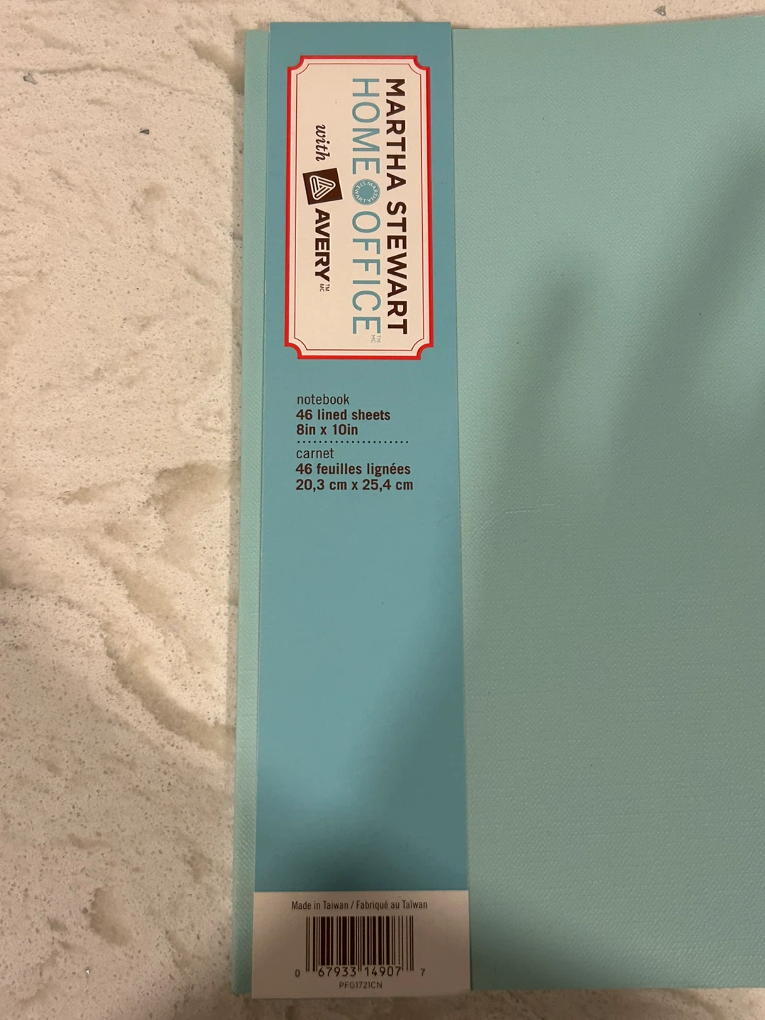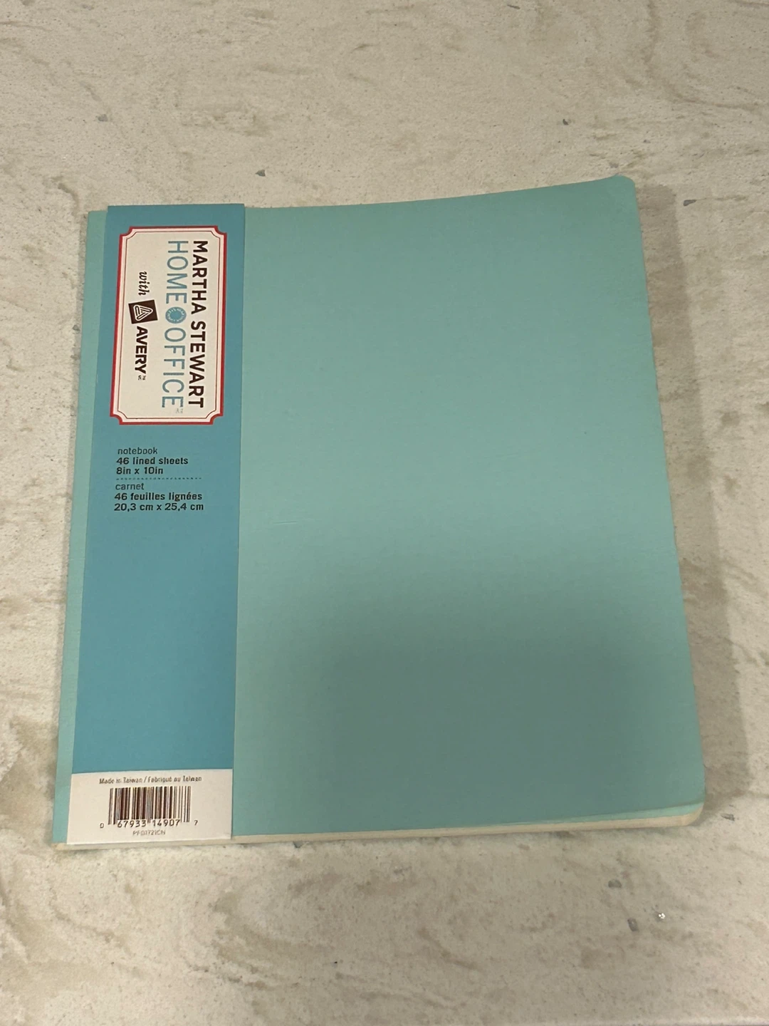 Selling a Martha Stewart Home Office notebook in new condition! It's an 8in x 10in notebook with 46 lined sheets. Perfect for taking notes or journaling