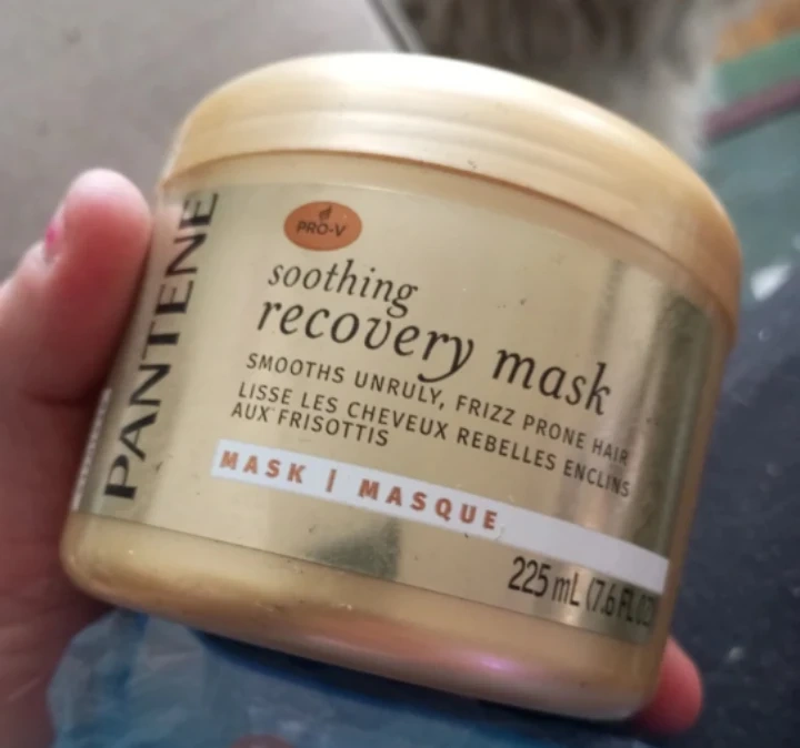 Selling a Pantene Pro-V soothing recovery mask for unruly, frizz-prone hair. The mask is 225 mL (7.6 FL OZ).