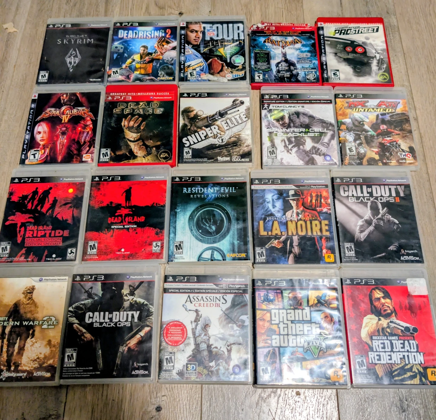 Selling a used Sony PlayStation 3 slim 120GB (PS3) console. It has normal wear and tears. Has new 2 OEM controllers and new power cables. In perfect working condition and comes with 20 games. Please see pictures for all the games included.