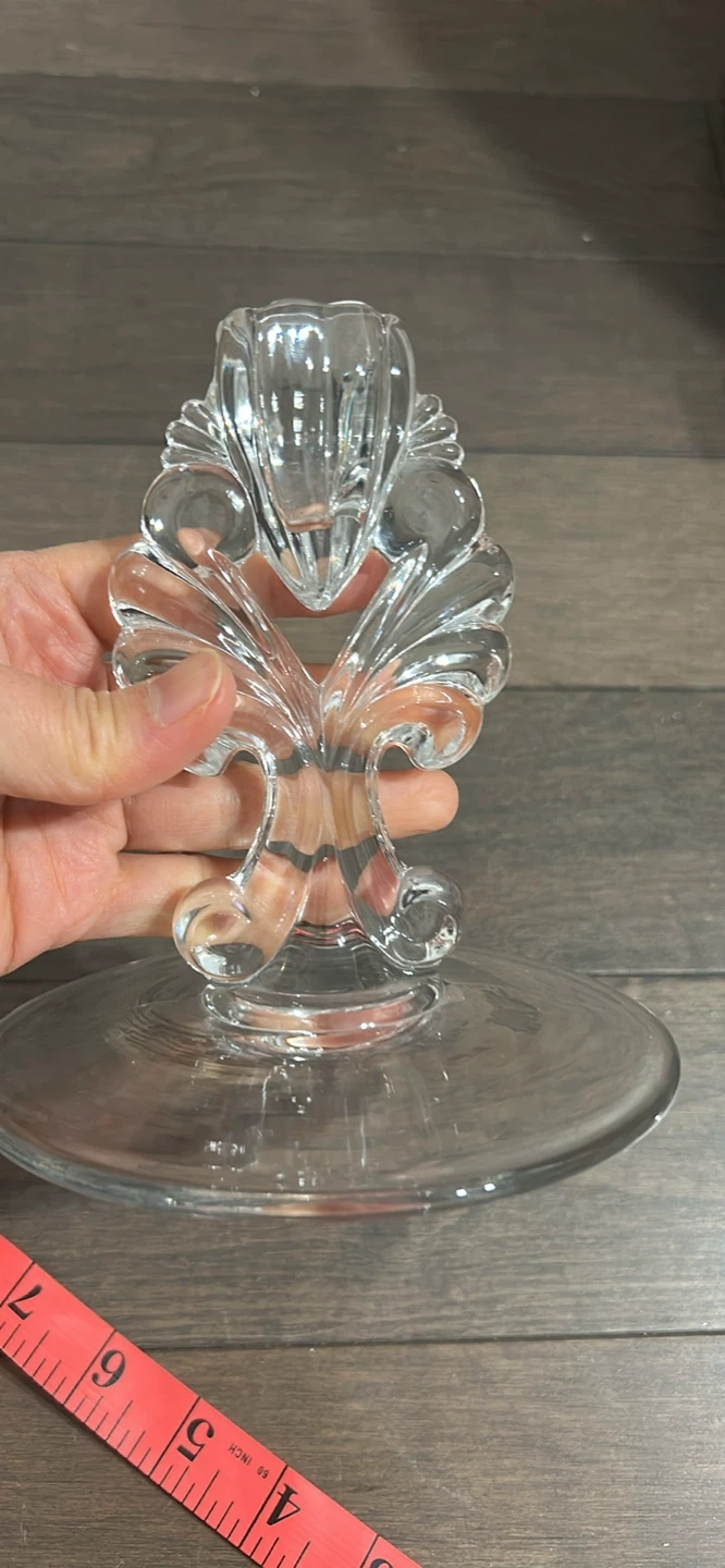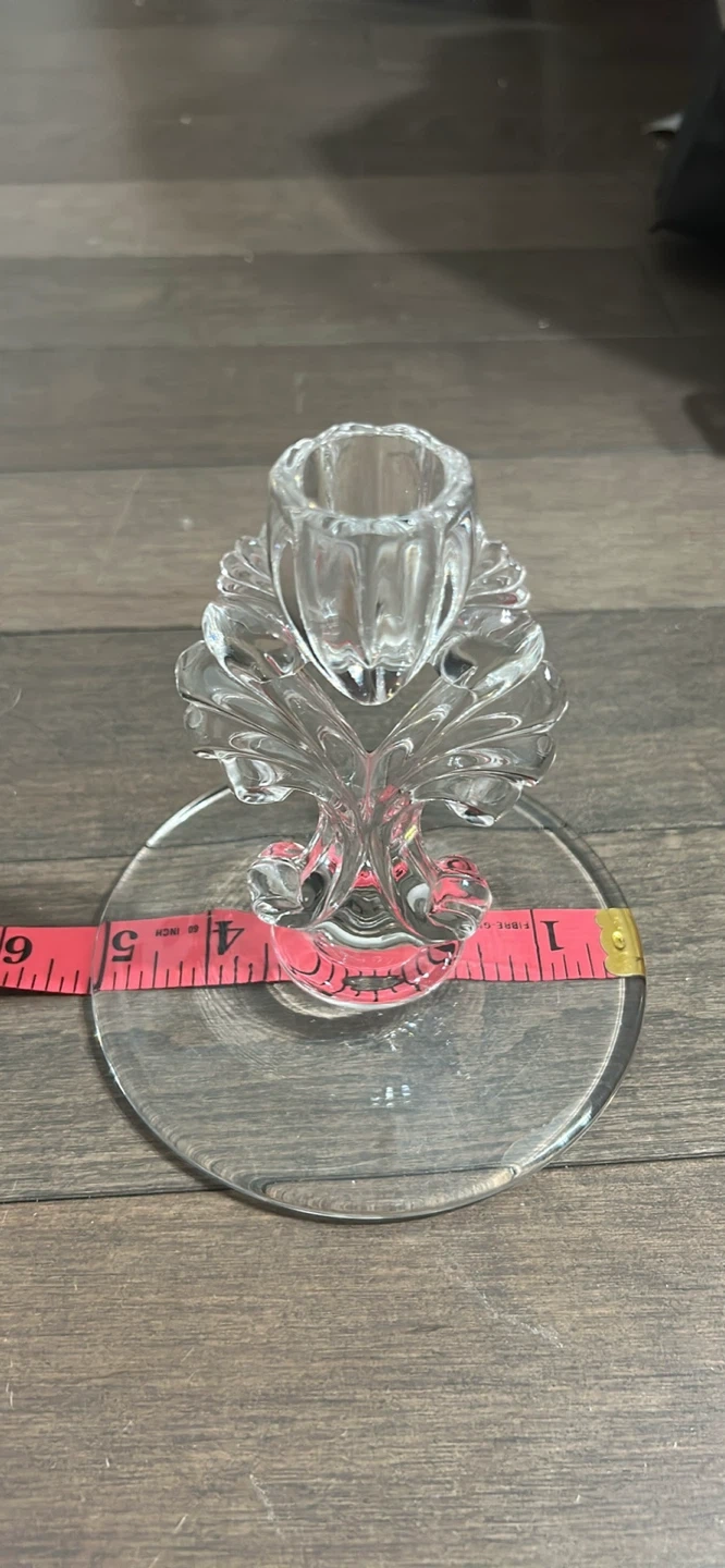 Selling a clear glass candlestick holder! It's in great shape and ready to add a touch of elegance to your home. The base diameter is approximately 5 inches