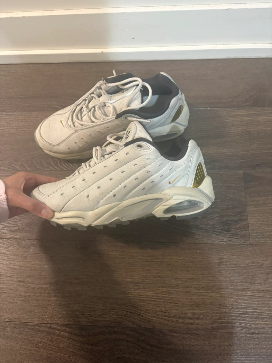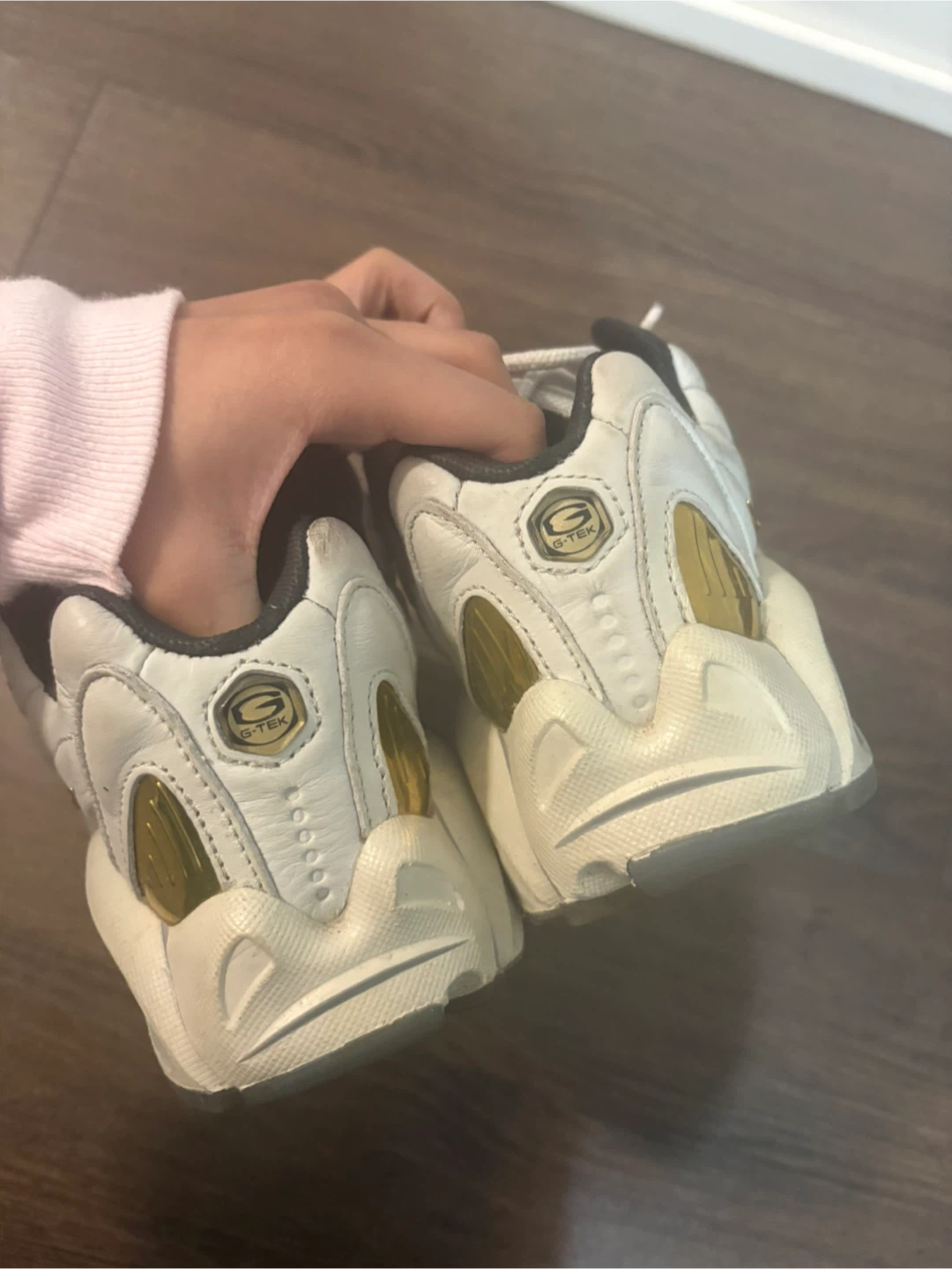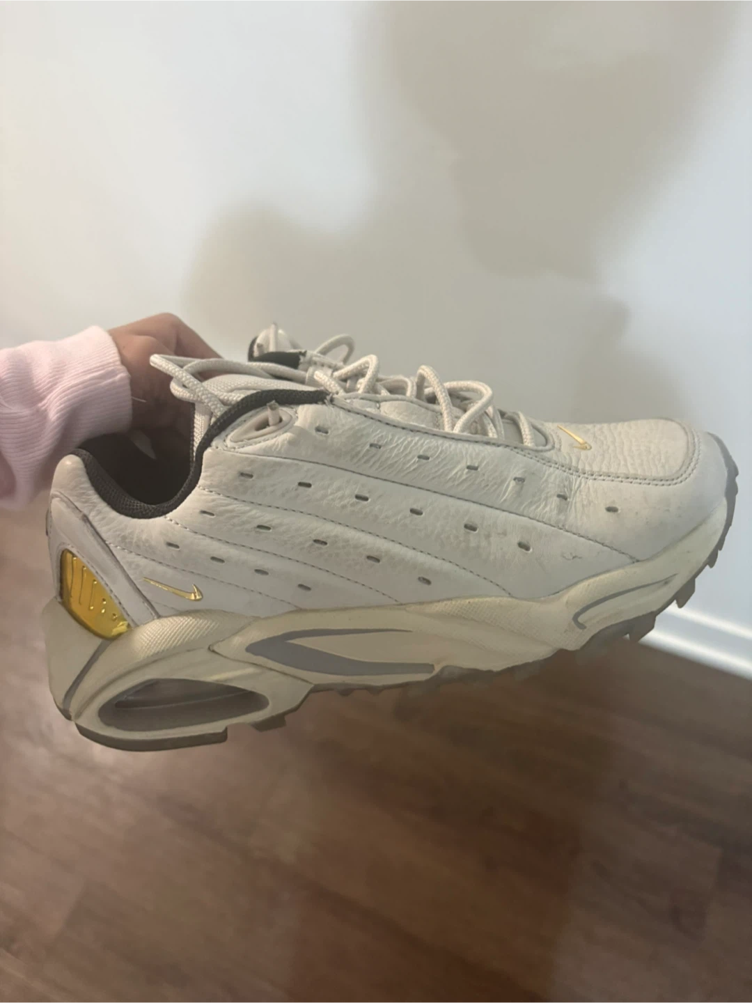 White and gold detailed Nike nocto running shoes. It was used a couple times but is in great condition. It is as a kids size 6 or a women’s size 8.