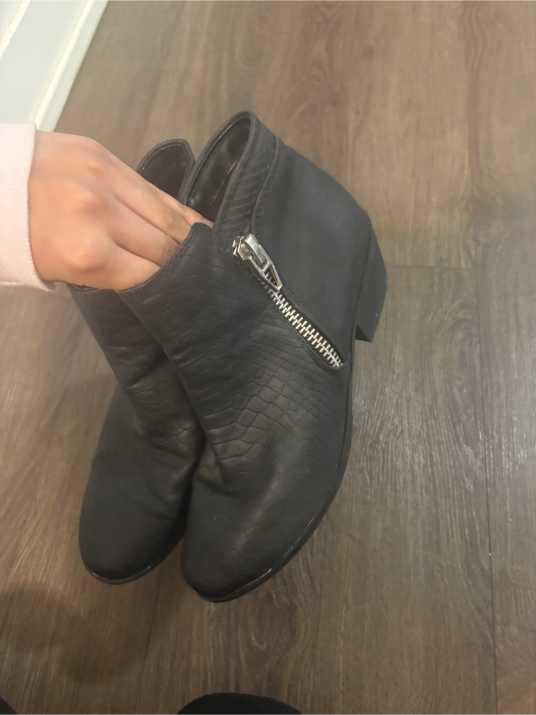 Black snake skin ankle boots - Size 7 women’s