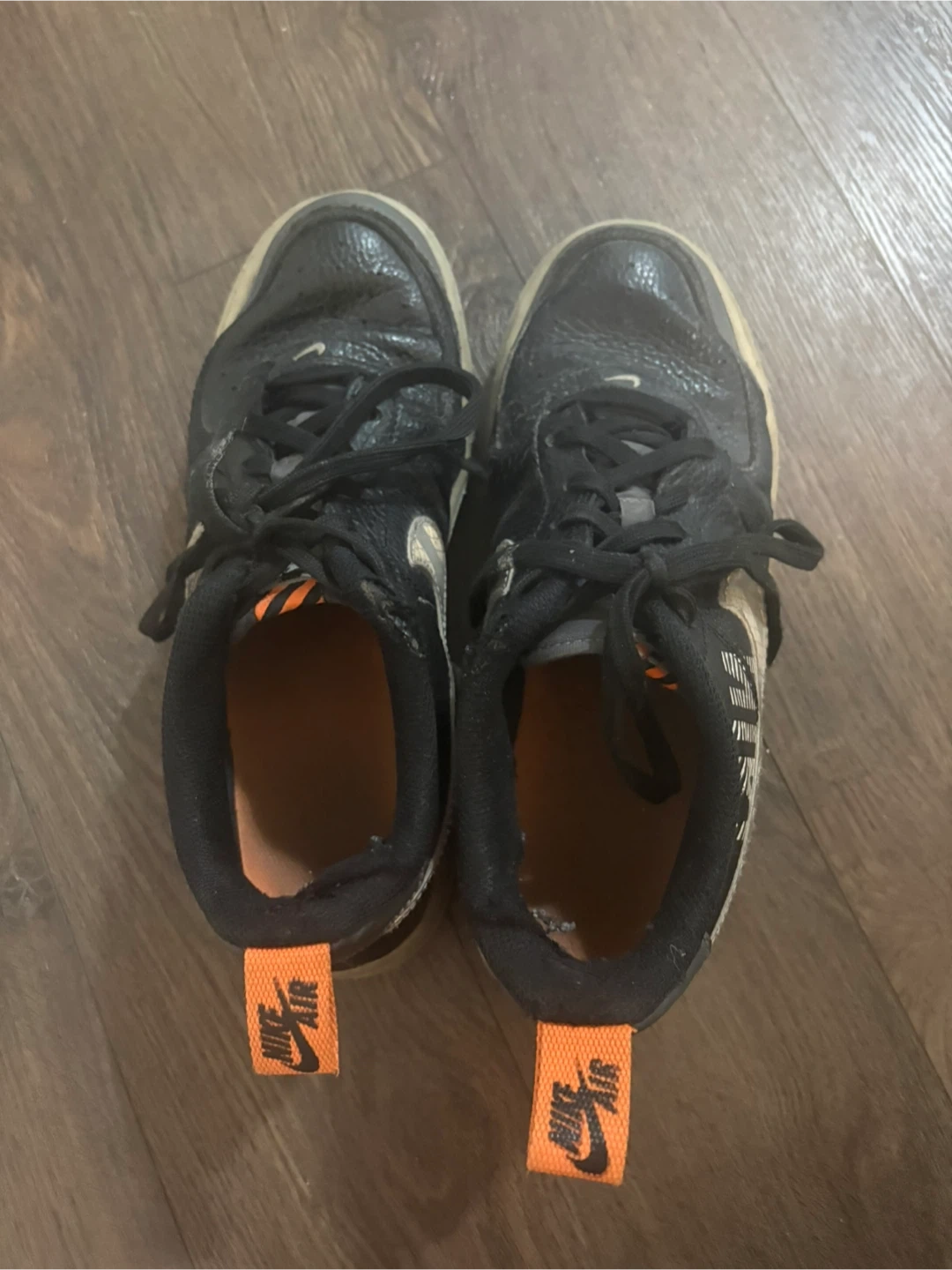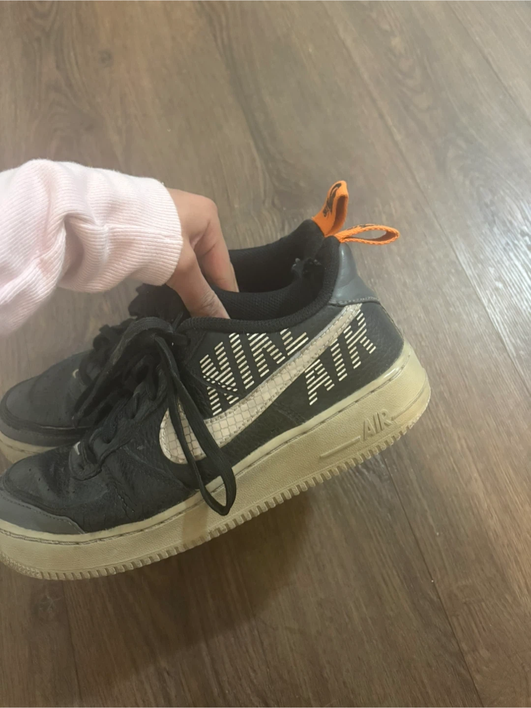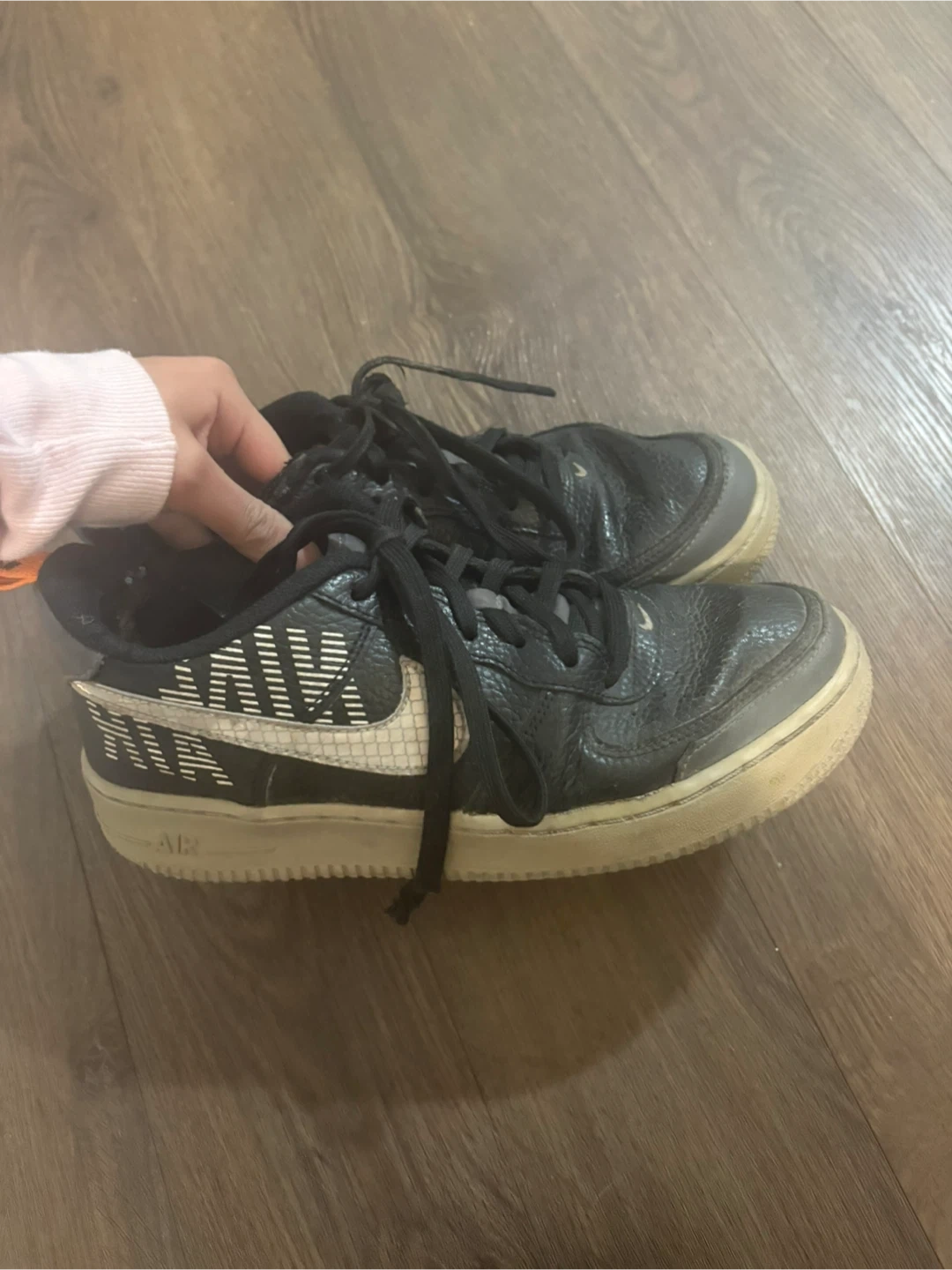 Selling a pair of Nike Air Force 1 Low sneakers in black. They show some signs of wear, as seen in the photos, but still have lots of life left! Perfect for everyday wear, and was limited edition. It is also a kids size 5.5.