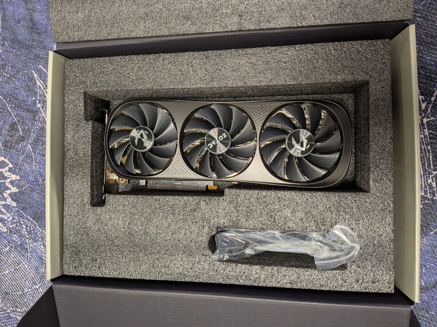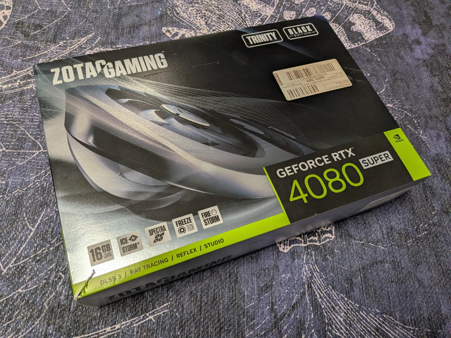 Selling a new ZOTAC GAMING GeForce RTX 4080 SUPER Trinity Black Edition graphics card! It comes with the original box and all included components.