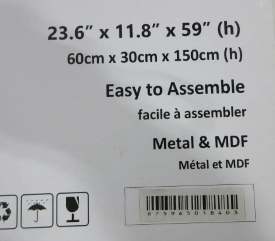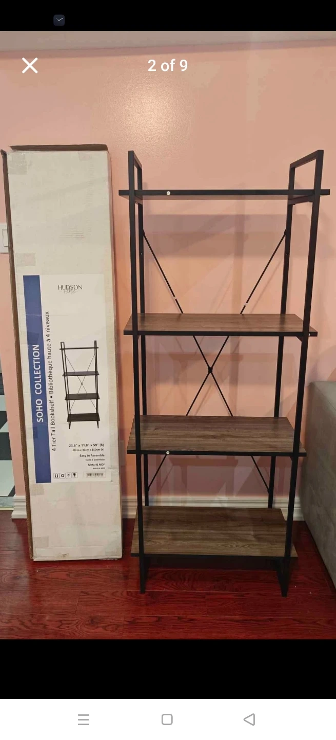 Selling a Hudson & Home SOHO Collection 4-tier bookshelf. It's easy to assemble and made of metal and MDF. Dimensions are 23.6" x 11.8" x 59" (h) or 60cm x 30cm x 150cm (h). Includes the box.