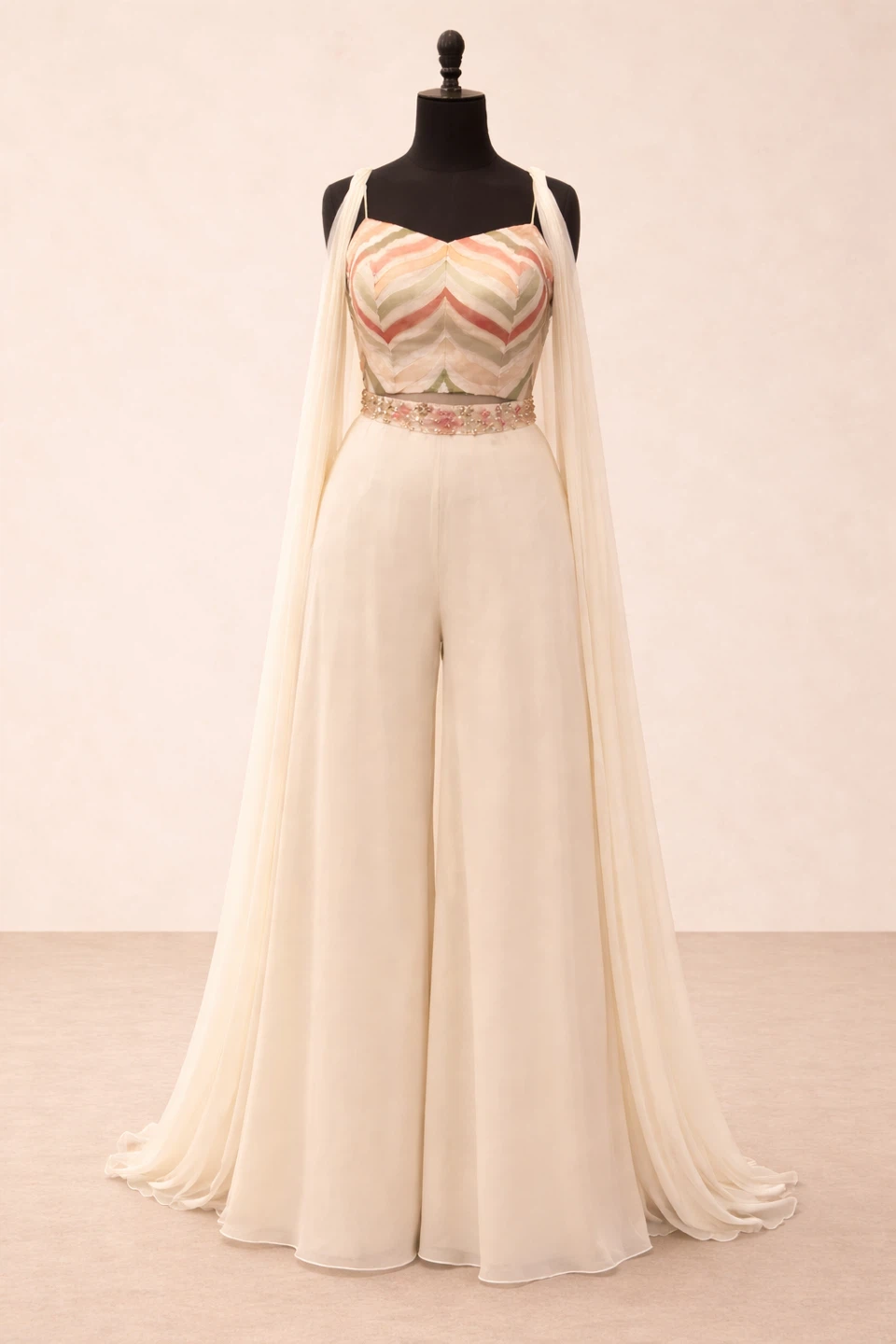 Elegant Cream Jumpsuit with Sheer Cape