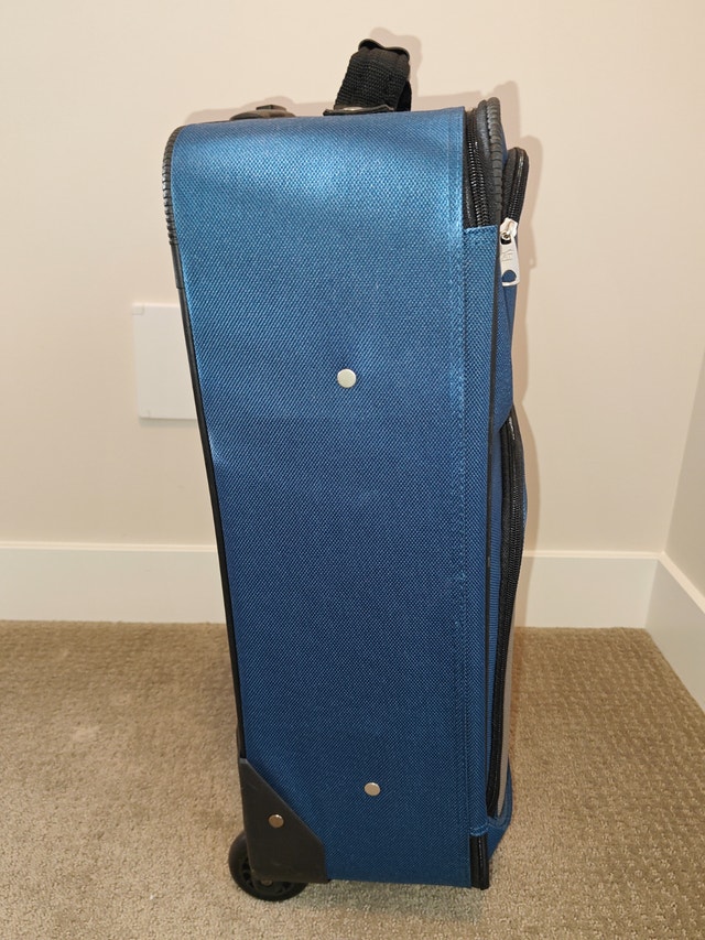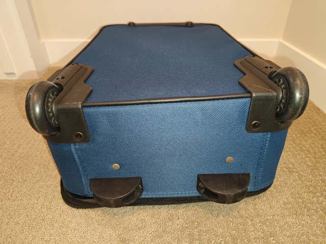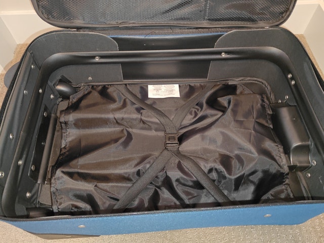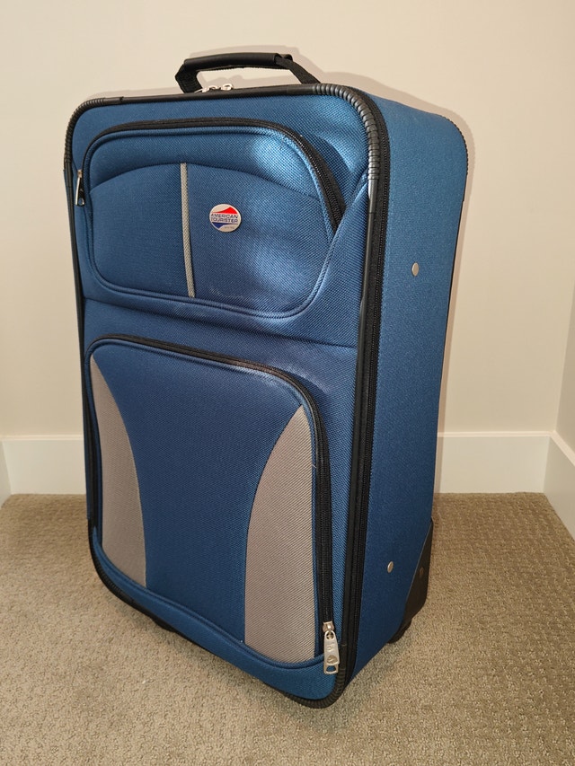 Selling an American Tourister 22" Upright Soft Shell Luggage Suitcase in excellent, like-new condition. Used for only one trip with no functional or cosmetic issues. Classic deep blue with sleek grey accents. No rips, stains, or mechanical issues. Ideal size for a carry-on or weekend getaway.