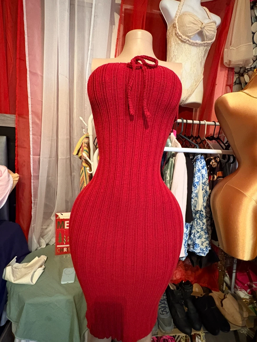 Here's a cute red knit bodycon dress! It's a vibrant red color and has a flattering bodycon fit. It's perfect for a night out or any special occasion. Feel free to reach out with any questions!