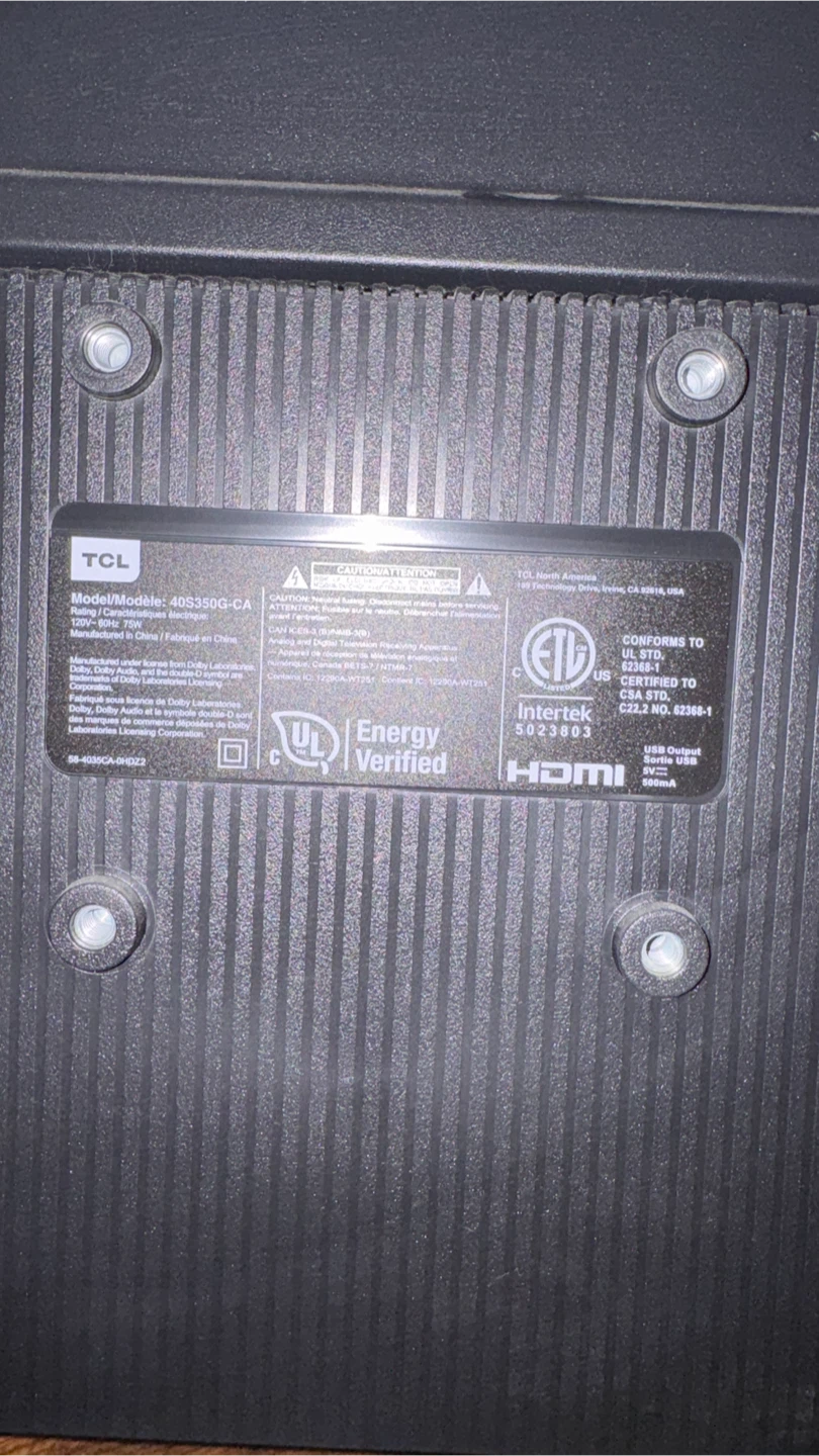 Selling a TCL 40" Smart TV, model 40S350G-CA. Please note that the remote is damaged, as seen in the pictures, but still working fine.