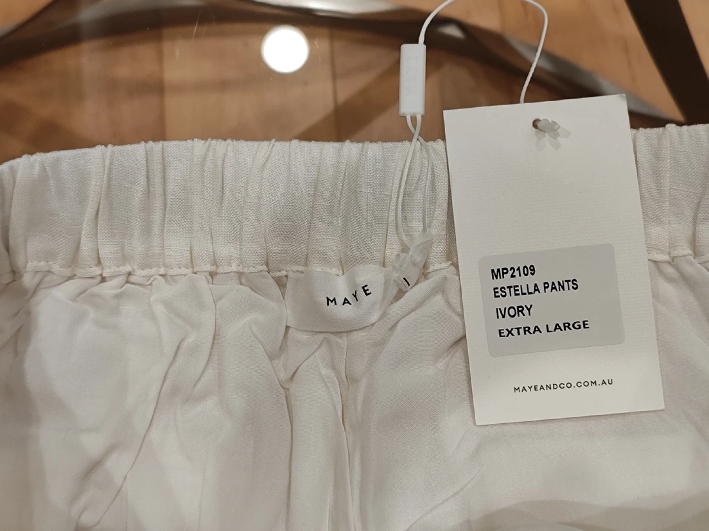 Selling a beautiful pair of wide-leg linen pants by Australian brand MAYE.