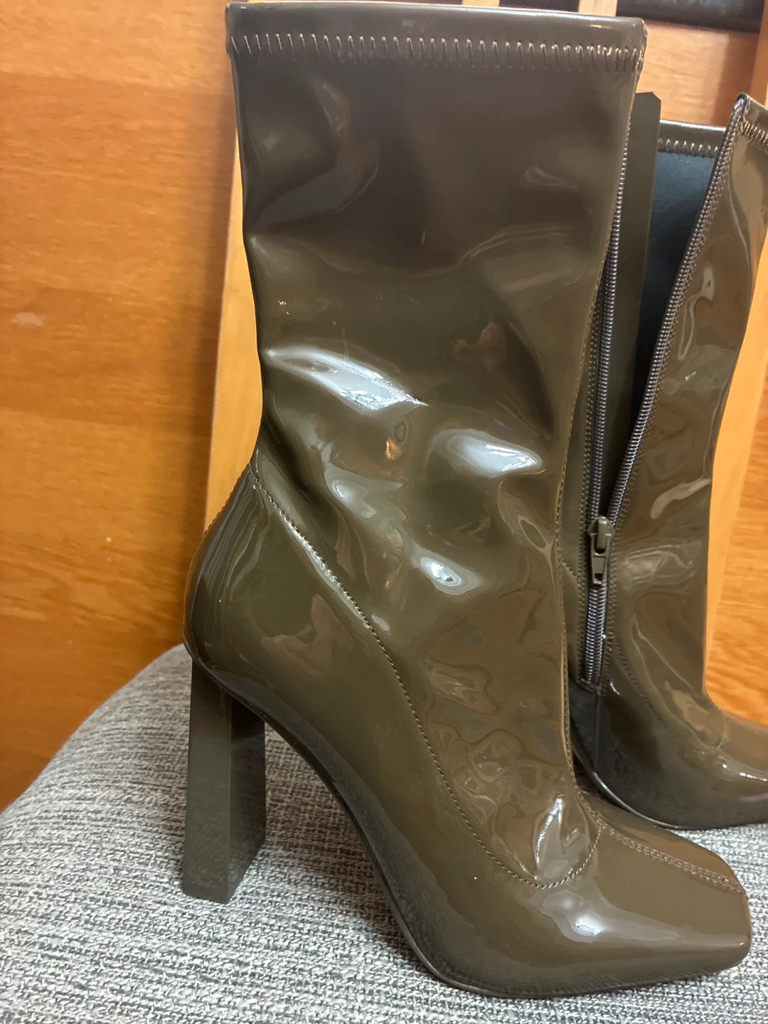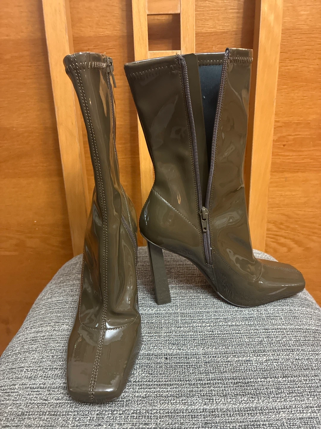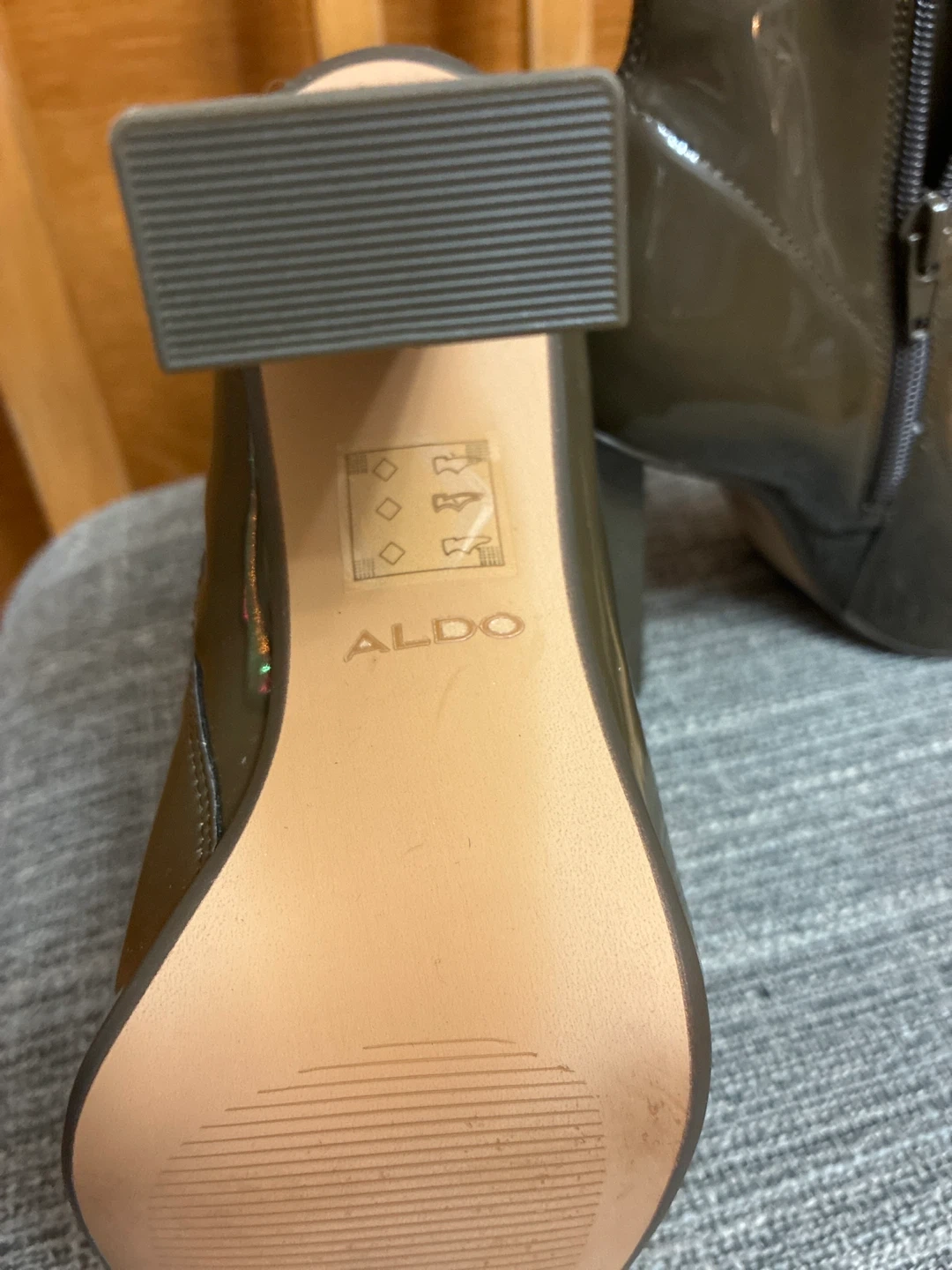 These are a pair of brand new Aldo boots in a beautiful brown patent finish. They are a US size 7, EUR 37.5, and UK 4.5. These stylish boots are perfect for adding a touch of sophistication to any outfit!