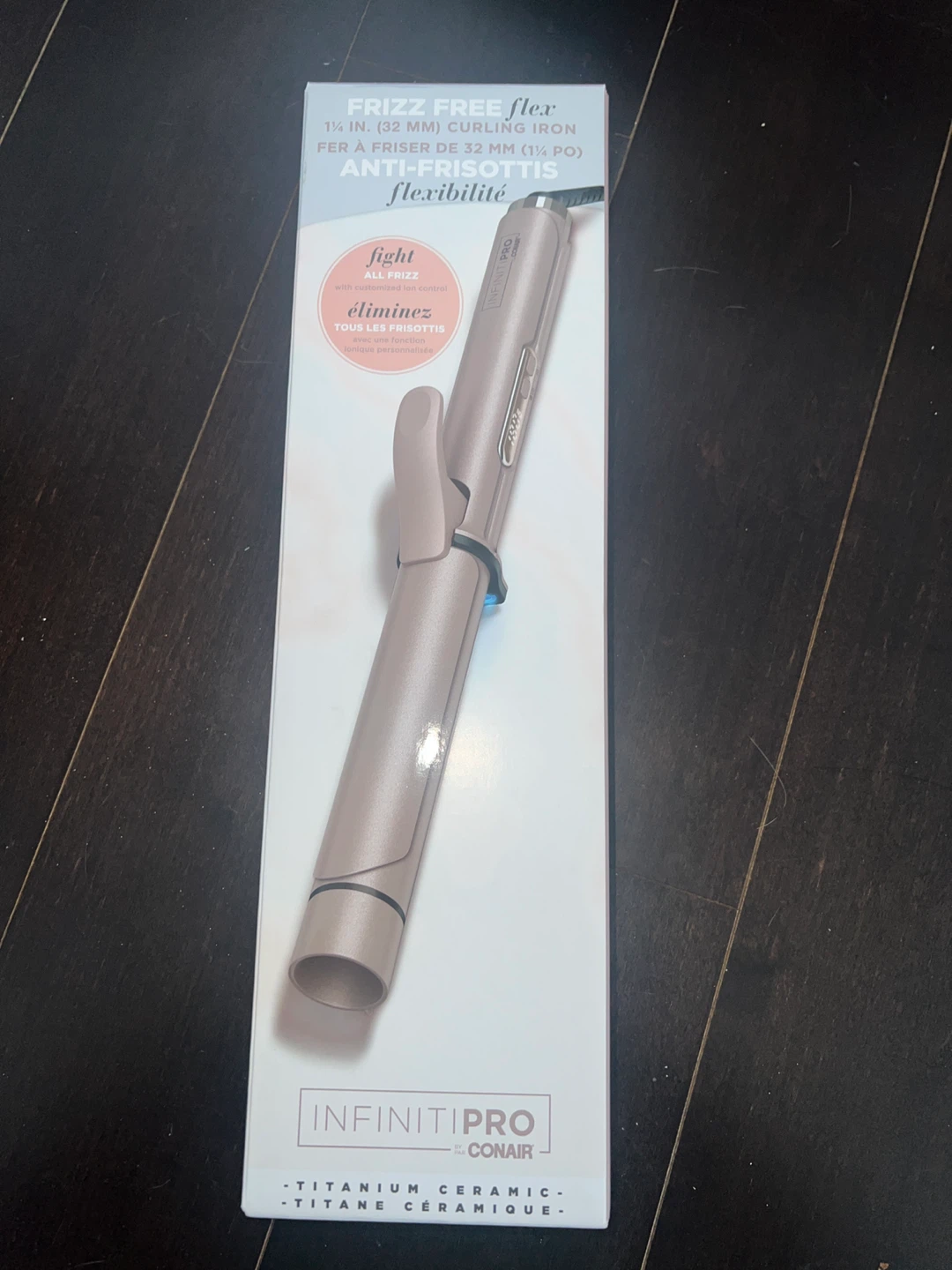 Selling a brand new InfinitiPro by Conair Frizz-Free Flex 1 1/4 in. (32 mm) Curling Iron! It features titanium ceramic technology for smooth, shiny curls and has a flexible ionic option to customize your style. The box is included.