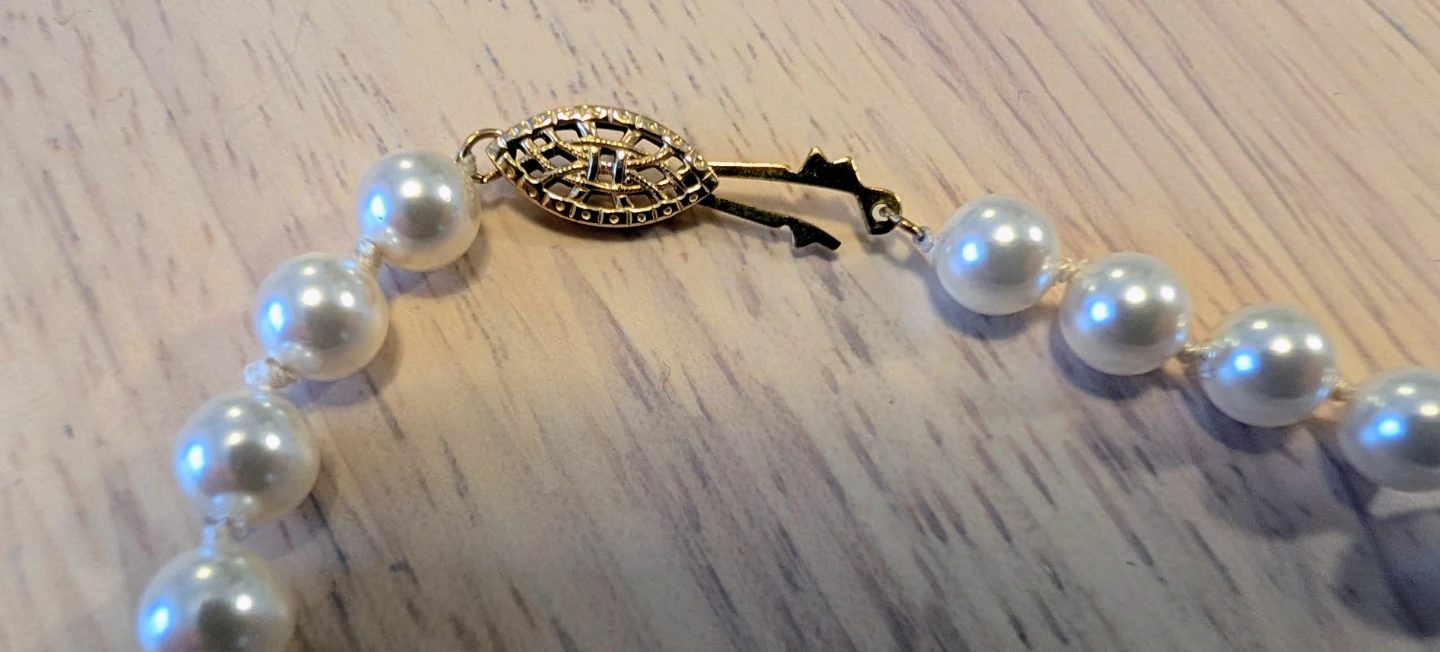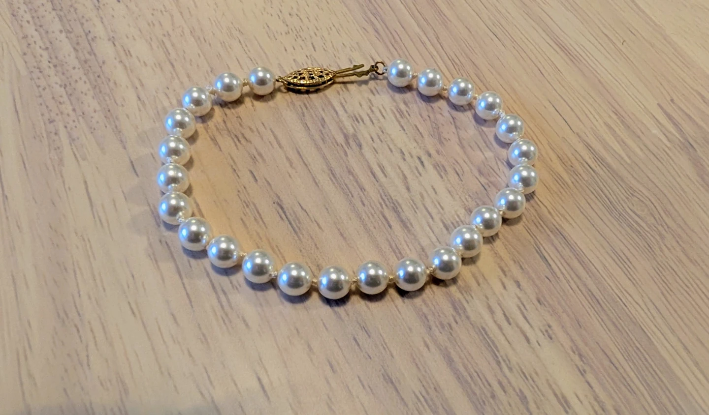 Selling a beautiful faux pearl bracelet. It's in great condition and features a gold-tone clasp. Perfect for adding a touch of elegance to any outfit!