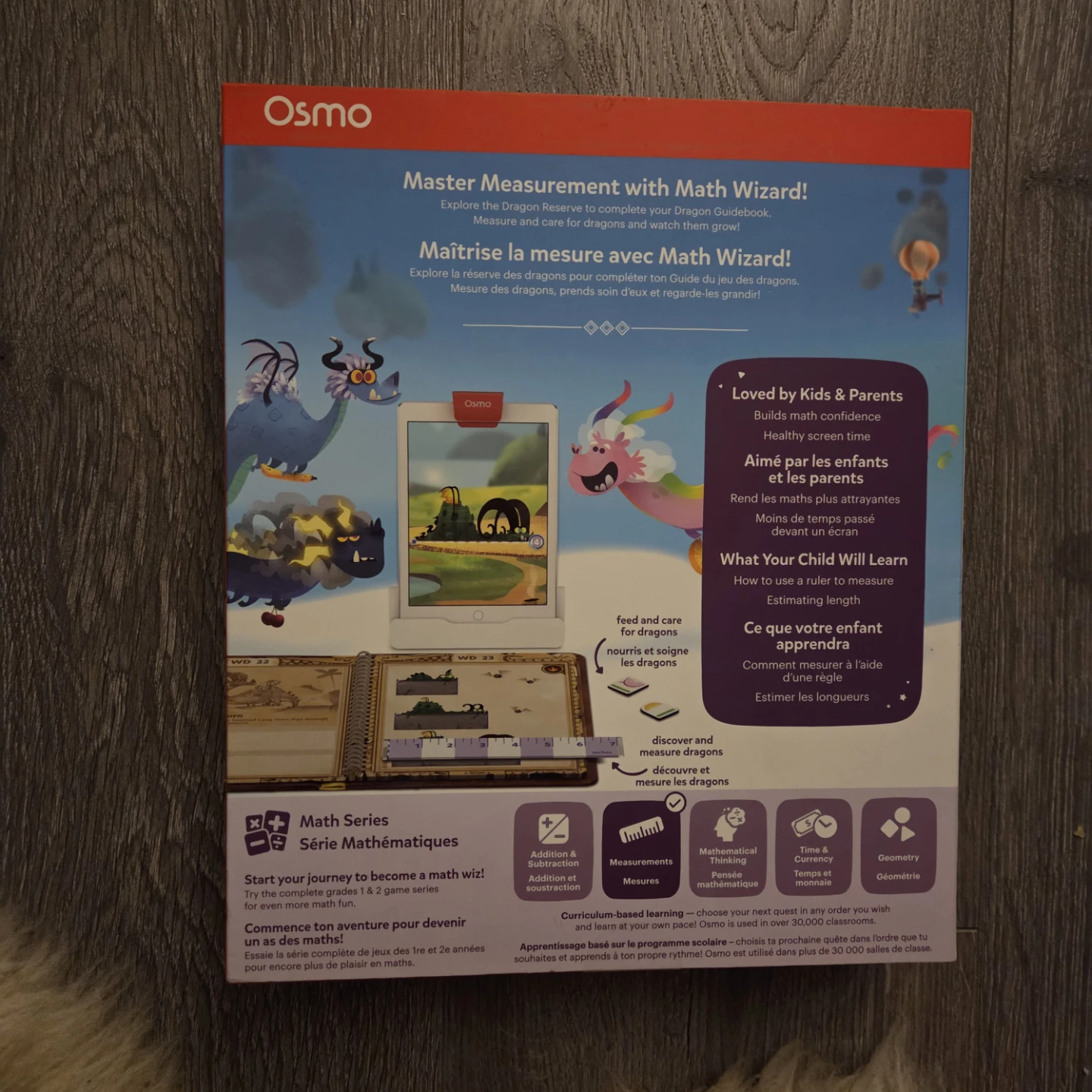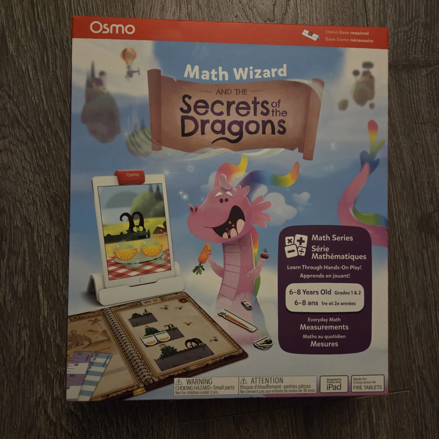 Selling the Osmo Math Wizard and the Secrets of the Dragons game! It's designed for kids aged 6-8 years old and is great for grades 1 & 2. This game is part of the Math Series and focuses on everyday math measurements. Comes with a dragon guidebook, 2 rulers, and 62 food tokens to help your little one learn while having fun. Curriculum-inspired!