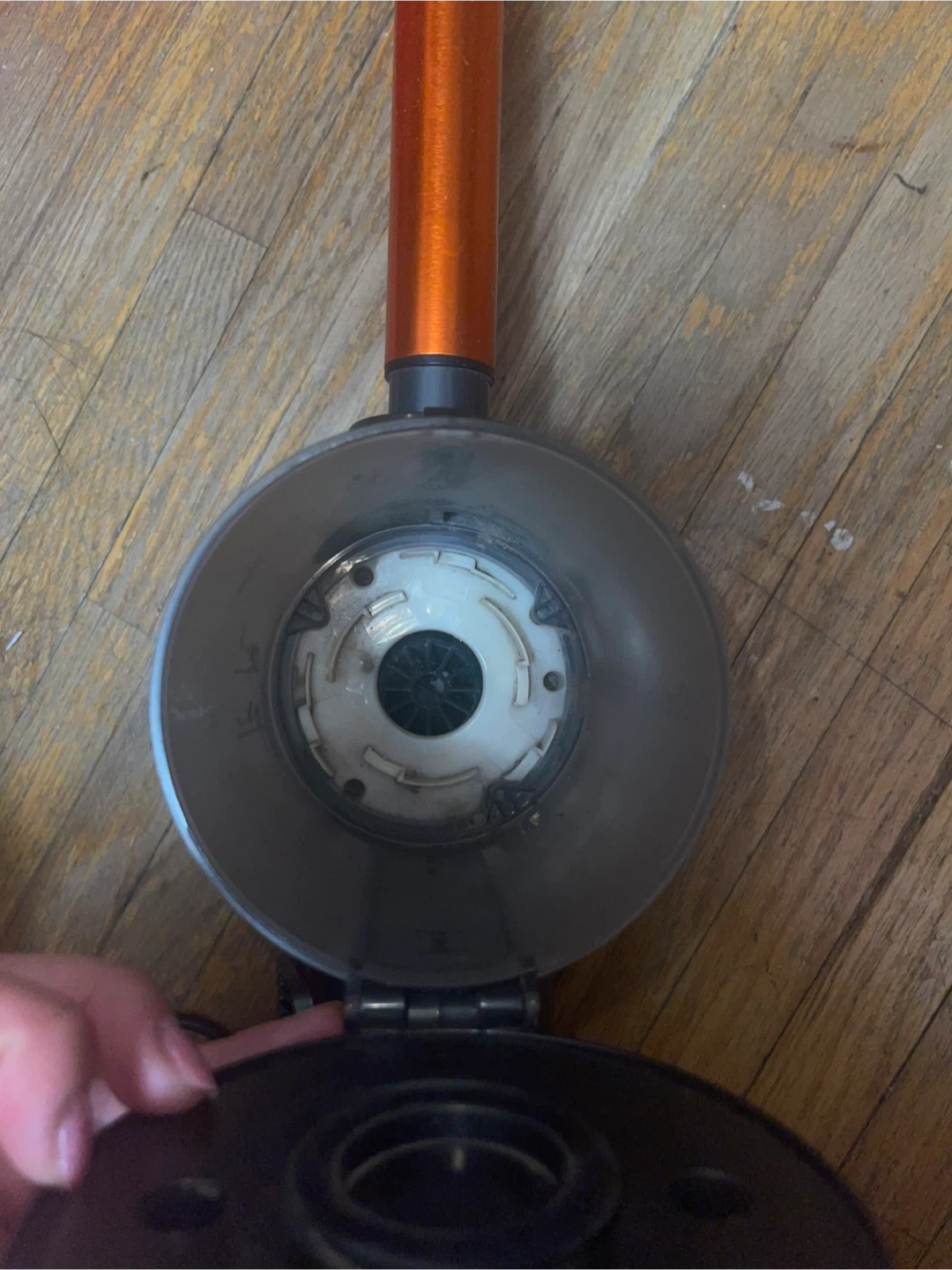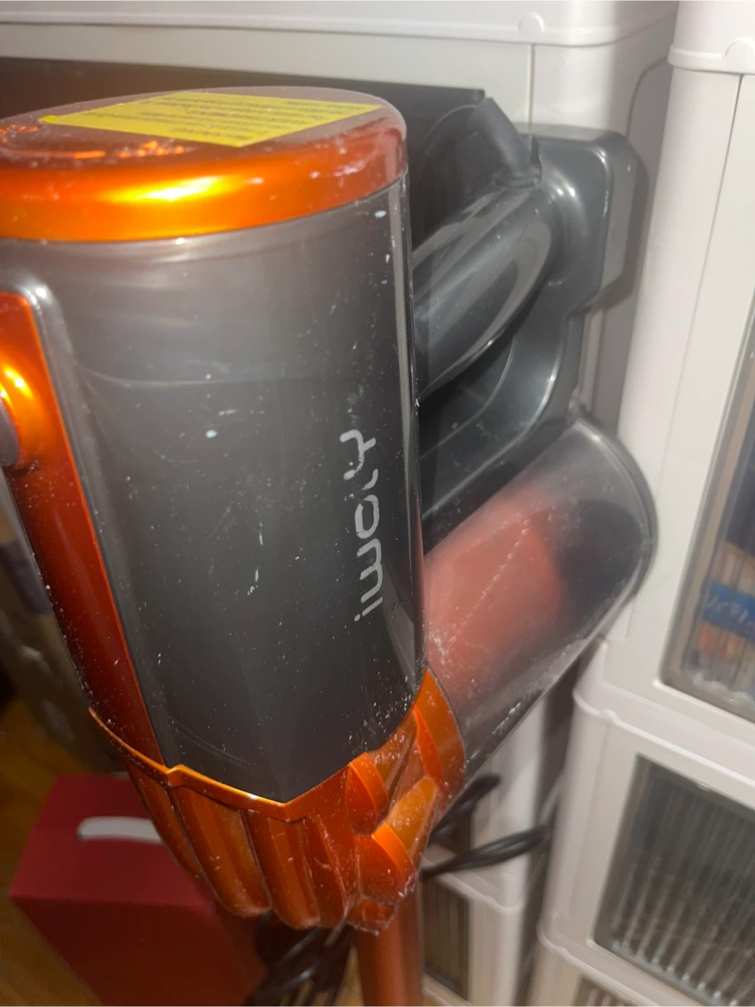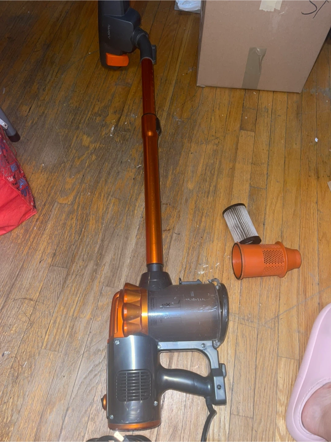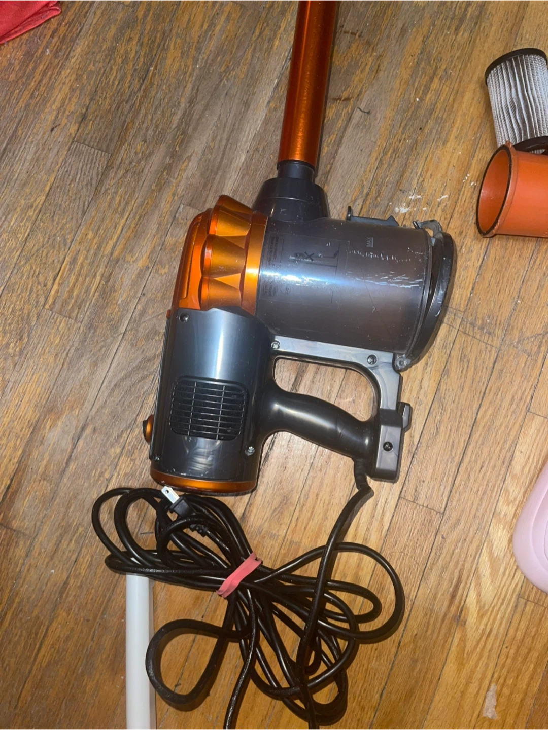 Selling an iWoly corded stick vacuum in orange and grey. It's in good working condition and ready to help keep your place clean.