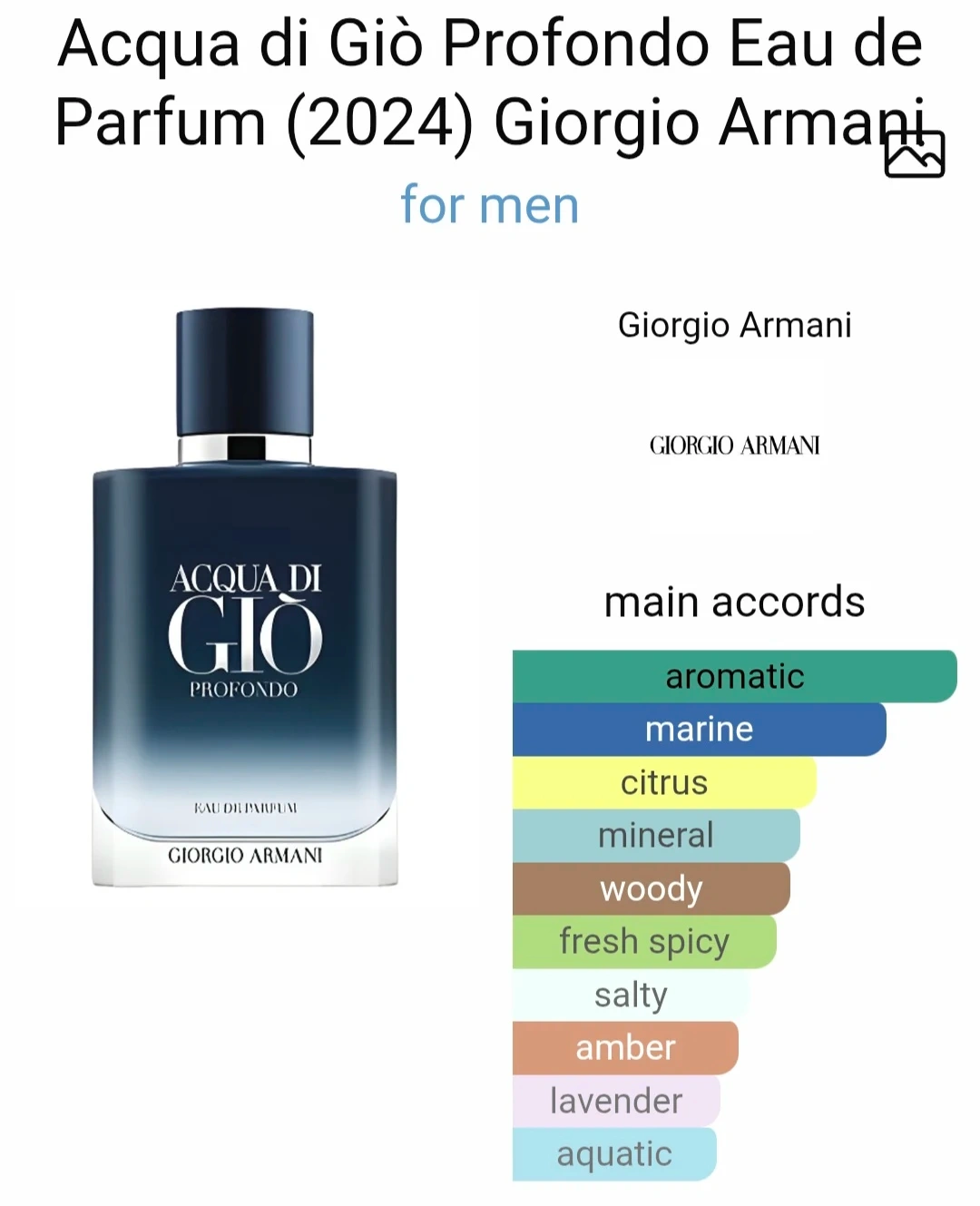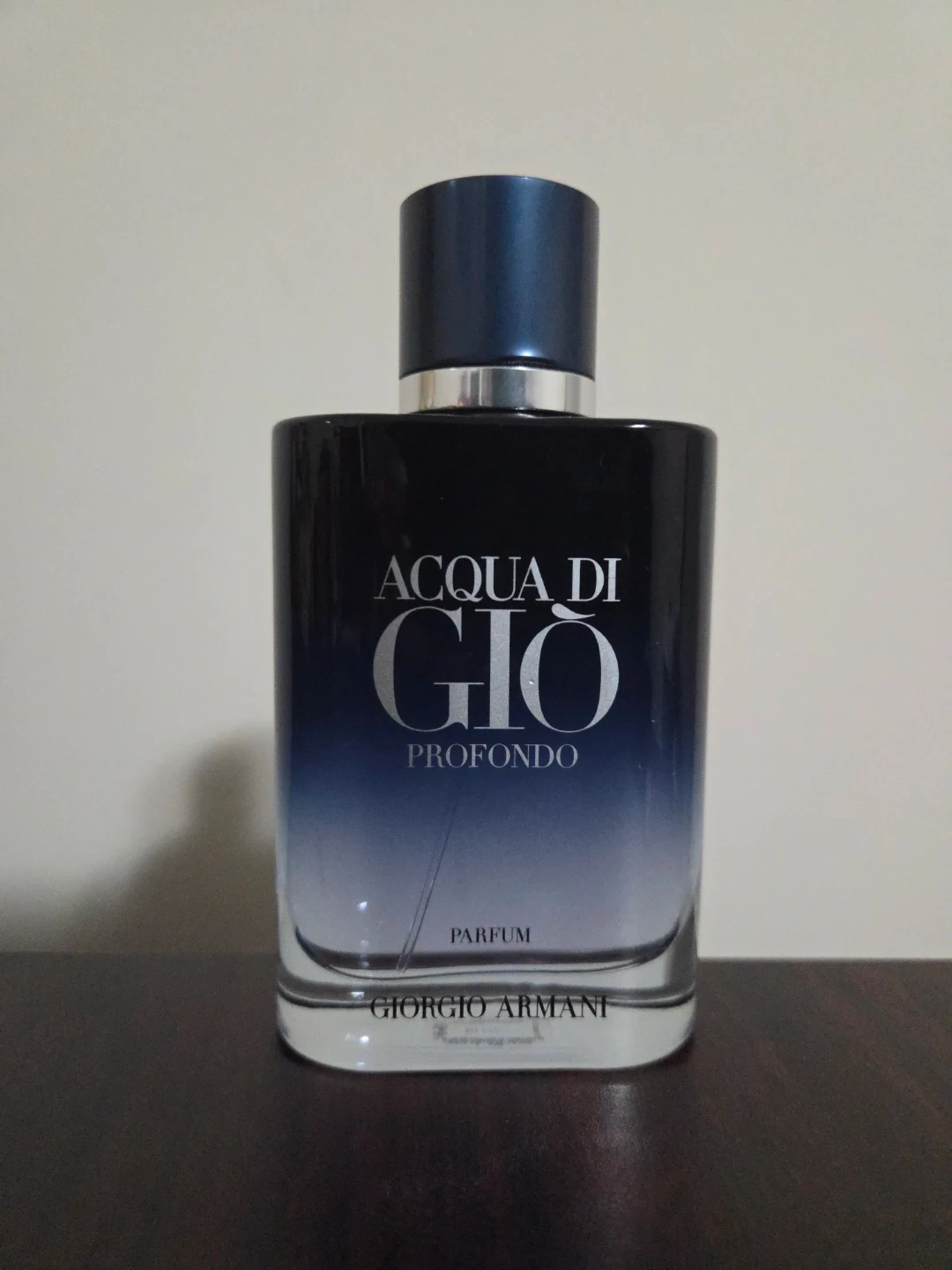 Authentic Giorgio Armani Acqua di Giò Profondo Eau de Parfum in its deep ocean-blue frosted glass bottle with sleek, modern design. This fragrance is fresh, aquatic, and sophisticated with a blend of marine notes, aromatic herbs, and mineral woods—perfect for everyday wear or a clean, masculine signature scent.