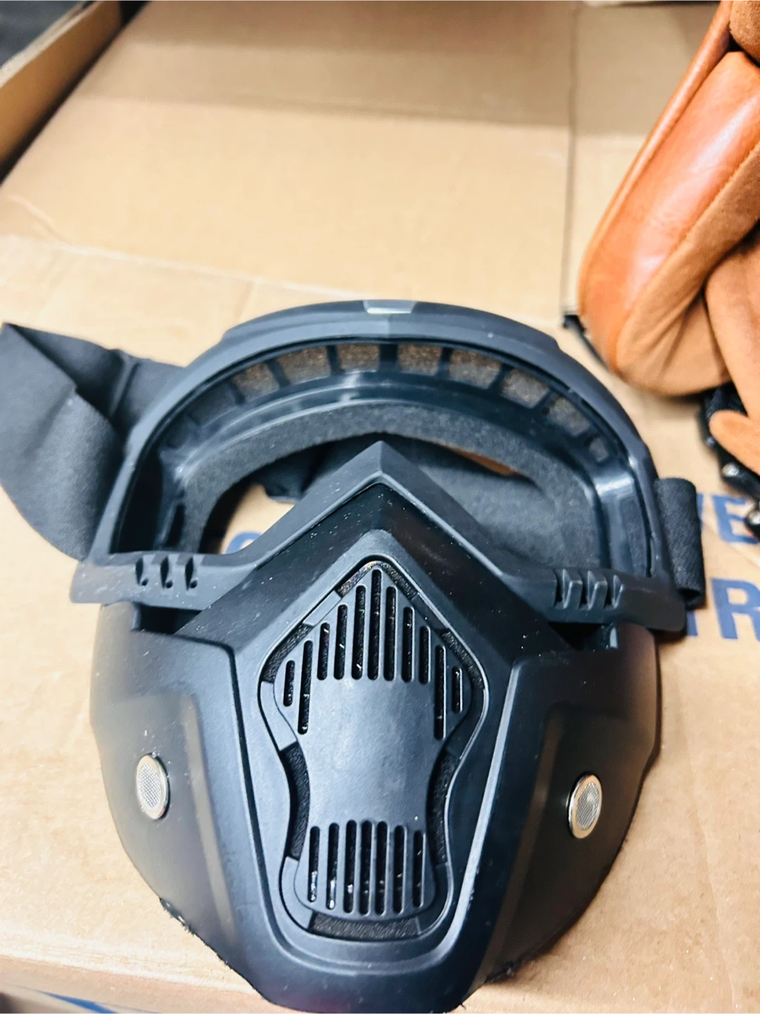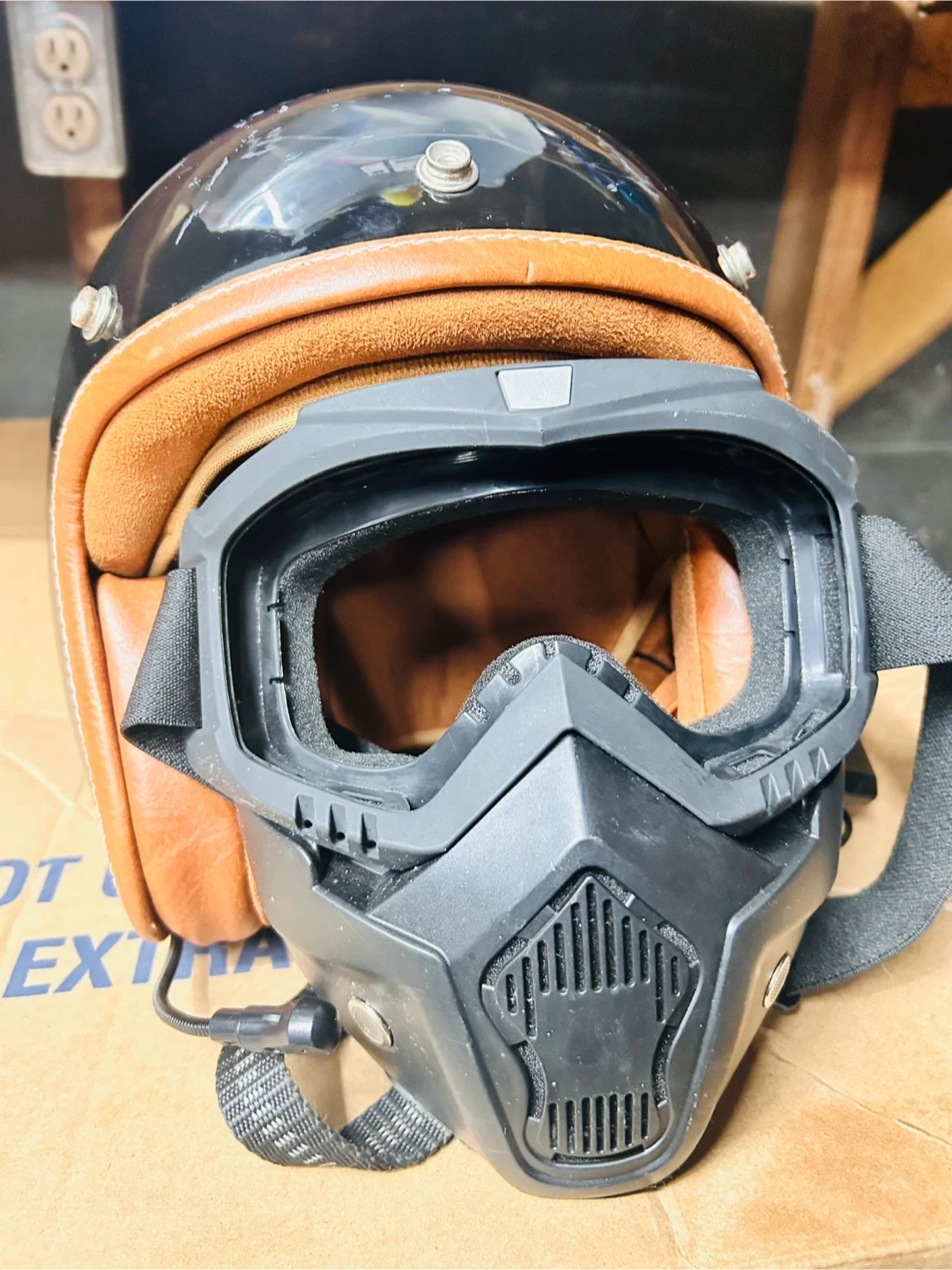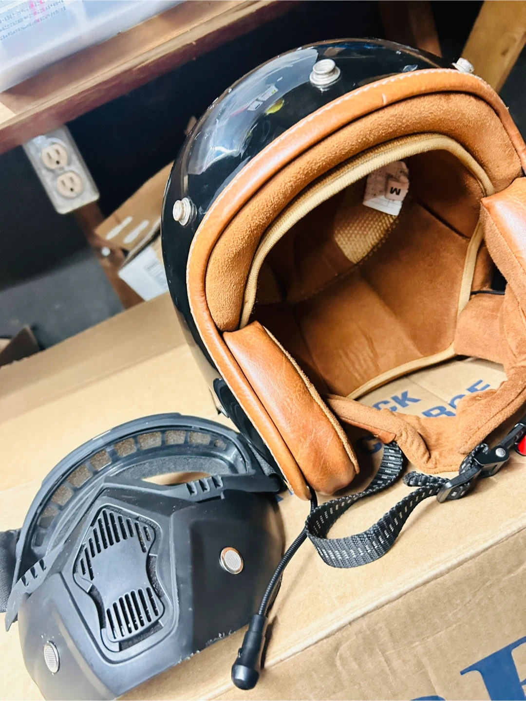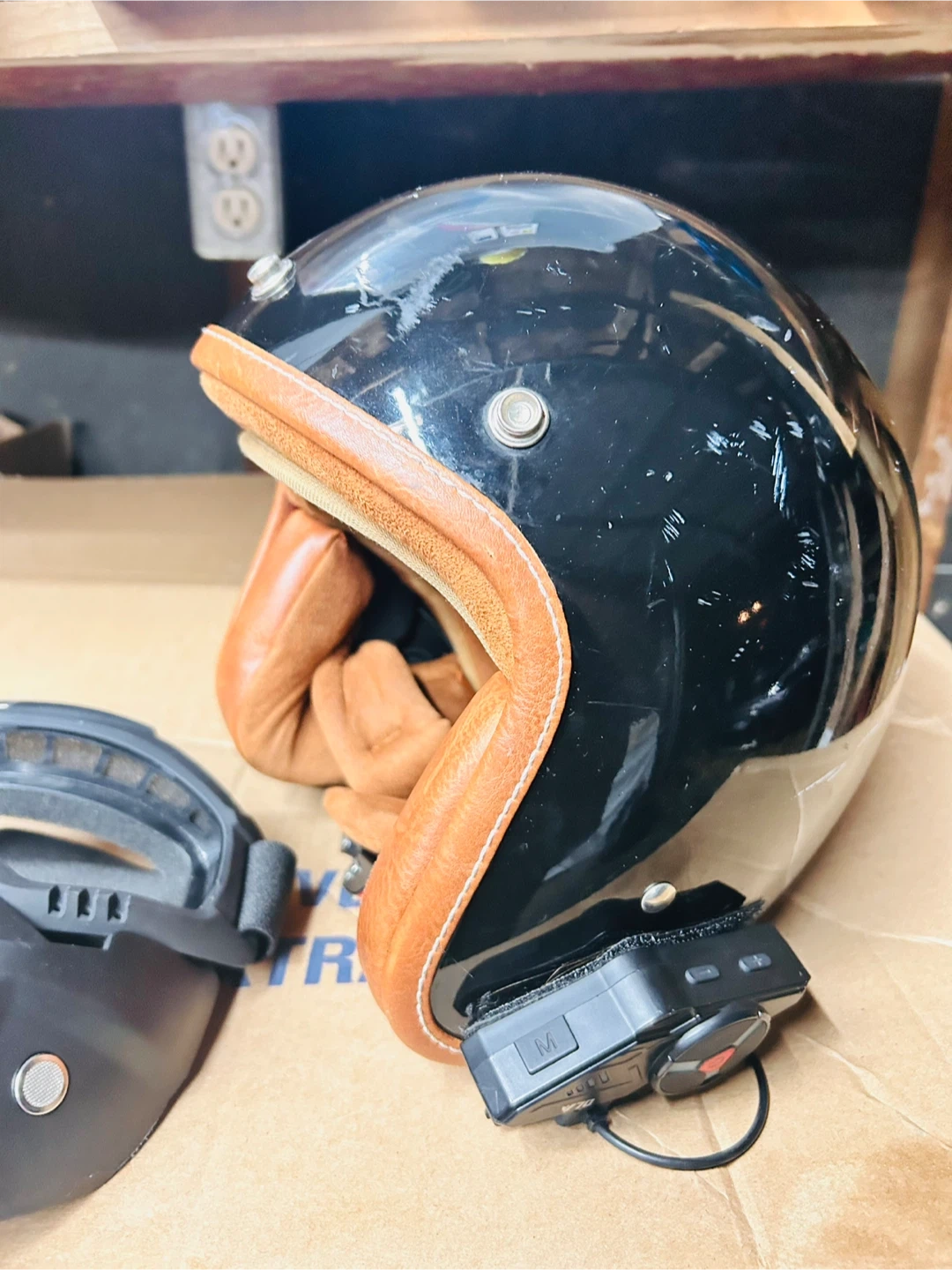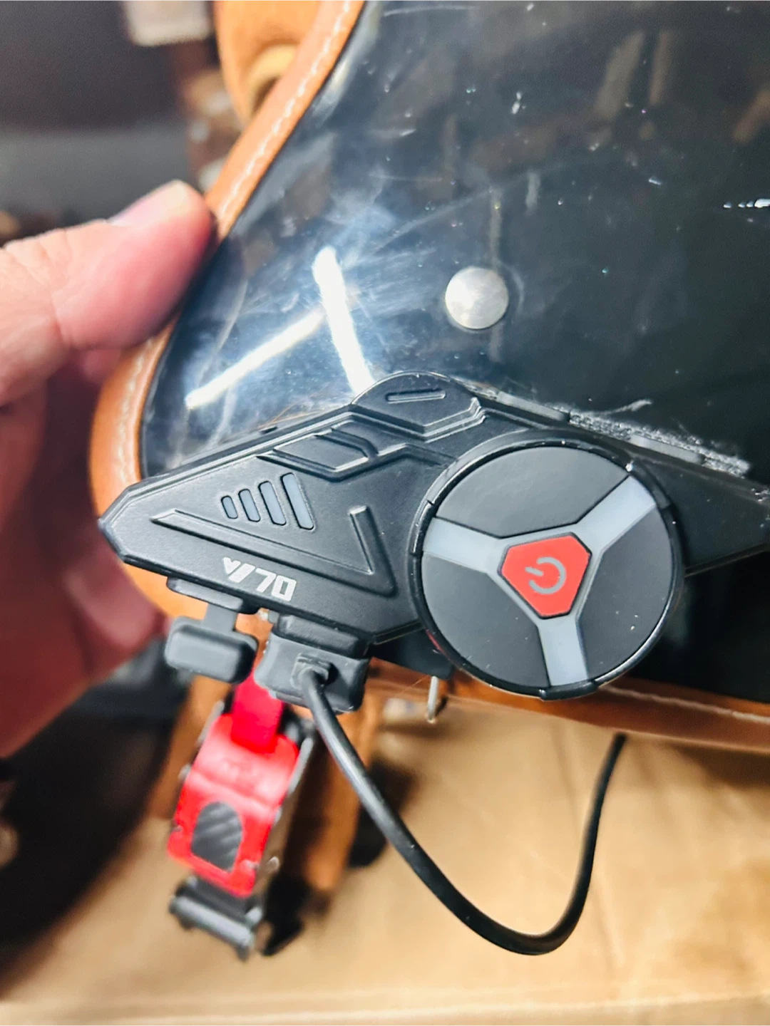 Selling a motorcycle helmet, size medium, in good condition. It comes with a cool visor and a V70 intercom system. It's all ready for your next ride!