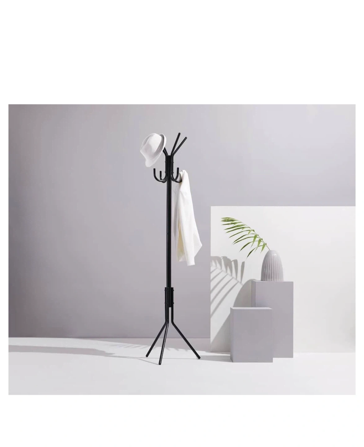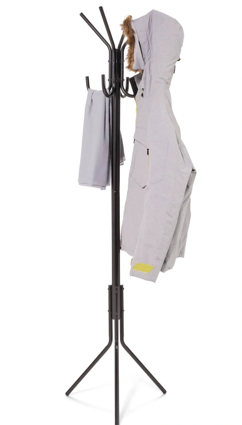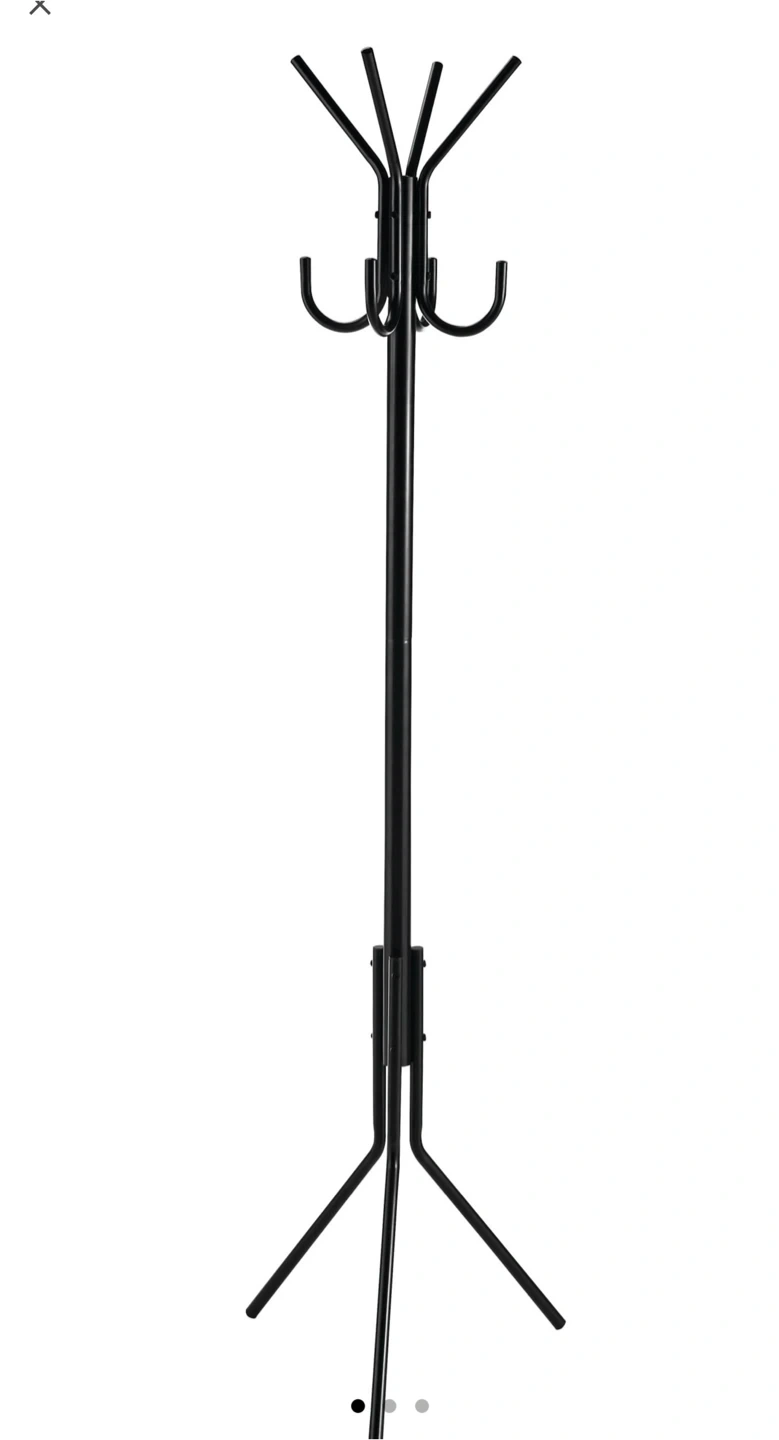 Here's a black metal coat rack stand that's perfect for keeping your entryway tidy. It's a simple and functional design that will fit in with any decor. Great for hanging coats, hats, and scarves! Very sturdy and strong, moving out and don’t need it anymore.
